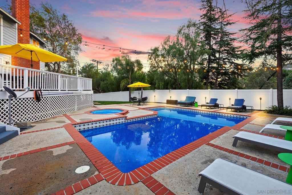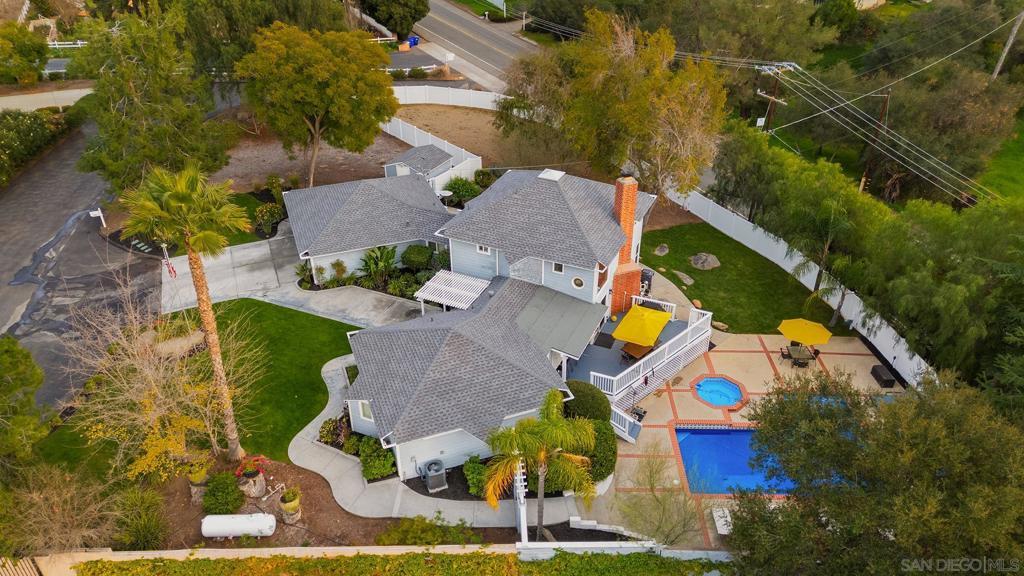 This unique, custom-built two-story Cape Cod–style home sits on a spacious lot featuring a sparkling pool and ample RV storage. The upgraded 2,371 square foot open-concept floor plan offers three bedrooms, two bathrooms, and a two-car garage. The home is filled with natural light from dual-pane windows throughout and features vaulted ceilings, shiplap, rustic wood beams, and a floor-to-ceiling stacked stone fireplace. The property is tucked into a quiet cul-de-sac with a scenic natural backdrop and abundant parking, just one mile from Interstate 15. The designer kitchen showcases white quartz countertops, an oversized island, white cabinetry, stainless steel appliances, and luxury vinyl plank flooring, making it ideal for entertaining. Step outside to a large covered deck with a built-in bar overlooking the pool and spa, or enjoy a peaceful morning coffee or sunset from the secondary patio deck. The outdoor oasis includes a variety of fruit trees and offers the perfect balance of entertaining and relaxed outdoor living. Additional upgrades include a new water mainline from the street to the house with added RV water supply, a new HVAC system with a mini-split heat pump in the primary suite, new garage doors with LiftMaster side-mount openers and deadbolt security, new vinyl fencing with a lifetime warranty, a new pool liner, filter, variable-speed pump, salt system, and a new roof with a 50-year warranty and premium underlayment insulation providing approximately 30 percent heat transfer reduction throughout the home. Don’t miss this exceptional opportunity!