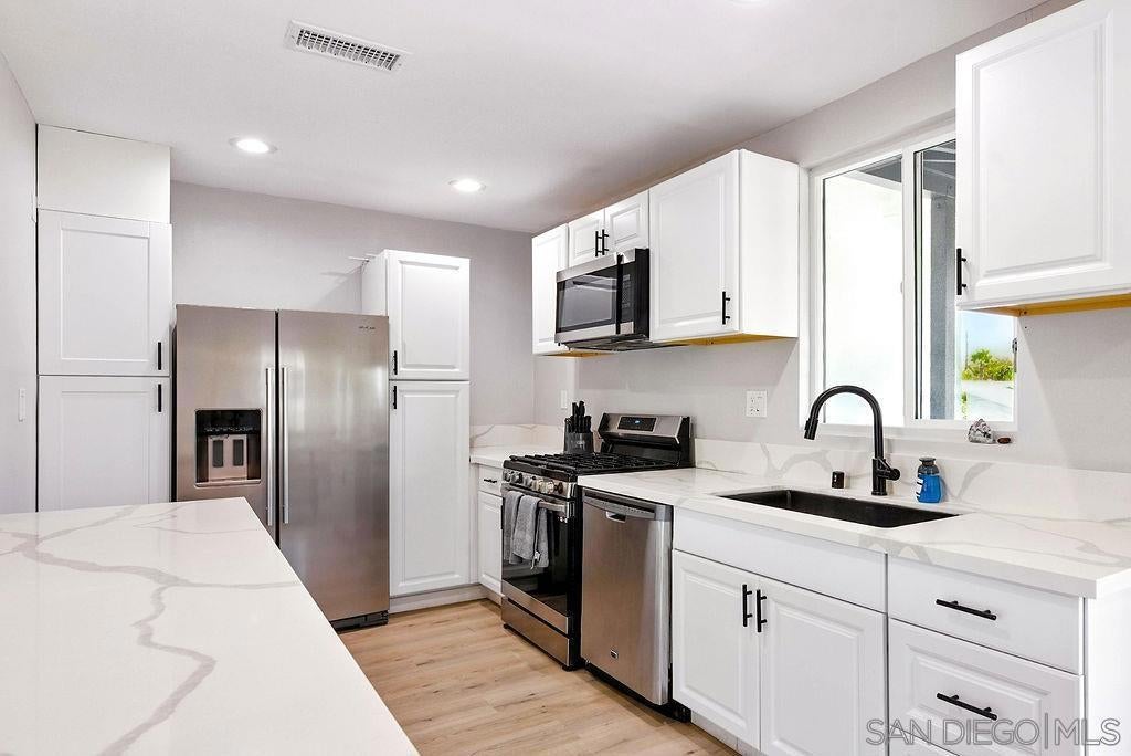 Remodeled, move-in-ready beach bungalow with a back yard designed for the ultimate in entertaining. Upstairs features open floor plan with living room, kitchen & dining area, as well as a large lanai overlooking the back yard. Sparkling pool with slide, bubbling spa, covered BBQ pavilion, large patio with firepit as well as a covered patio all reside out back for your enjoyment. Here is your opportunity to live the beach lifestyle and be close to shopping, restaurants, schools, Buccaneer Park and the Oceanside Pier. 2 bedrooms and 2 full bathrooms on the main level and 2 more spacious bedrooms and another full bathroom on the lower level with a sitting room and a recreation room with that leads out to your amazing back yard. See supplement for more details. Located about a half mile to the Pacific Ocean, is this tastefully remodeled mid century beach bungalow. Fully fenced front yard with two play structures over grass leads to the entry of this 4+ bedroom, 3 bath house. Enter the front door and you’ll be greeted by a spacious living room that is open to a beautifully remodeled kitchen with quartz countertops, white shaker cabinets and stainless-steel appliances. Dining area off the kitchen features a glass slider that leads out to a large lanai that overlooks the back yard. Main level also features primary bedroom with the remodeled bathroom and a secondary bedroom with another full bathroom. Head down the stairs to the lower level of this entertainer’s delight and you’ll see a sitting area that leads to a spacious recreation room that features two stacked washer/dryer combos and a separate closet. This room could also serve as a fifth bedroom should you choose. Two more bedrooms and a full bathroom are also located on this lover level that leads out to the incredible, fully-fenced back yard. A large concrete patio with firepit is connected to a covered BBQ pavilion with granite covered bar and a large dining area. Rounding out the back yard paradise is a newly-built pool with spa as well as a covered patio. Two off street parking spaces are conveniently located beyond the fence off of the rear alley. Side yard leads to front and second side yard is also fenced in.