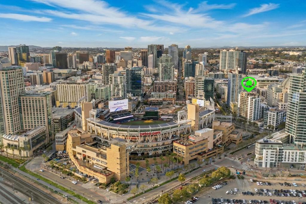 Experience vibrant downtown living in this spacious 1-bedroom, 1-bath condo at Park Terrace, located directly across the street from Petco Park. Offering 808 sq ft, the open layout is designed for comfort and entertaining, featuring a roomy kitchen with stainless steel appliances, an in-unit washer and dryer, and a large balcony to soak in the city energy. The well-sized bedroom features a walk-in closet and plenty of space to unwind. Enjoy the convenience of one assigned parking space, plus controlled access and 24-hour security for added peace of mind. Park Terrace residents enjoy a well-equipped fitness center and a rooftop BBQ terrace, ideal for hosting friends or relaxing above the buzz of downtown. Step outside and you’re just moments from the Gaslamp Quarter, top restaurants, shops, and nightlife—bringing the best of San Diego right to your doorstep. VA approved and move-in ready—schedule your private tour today.
