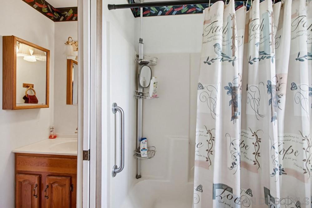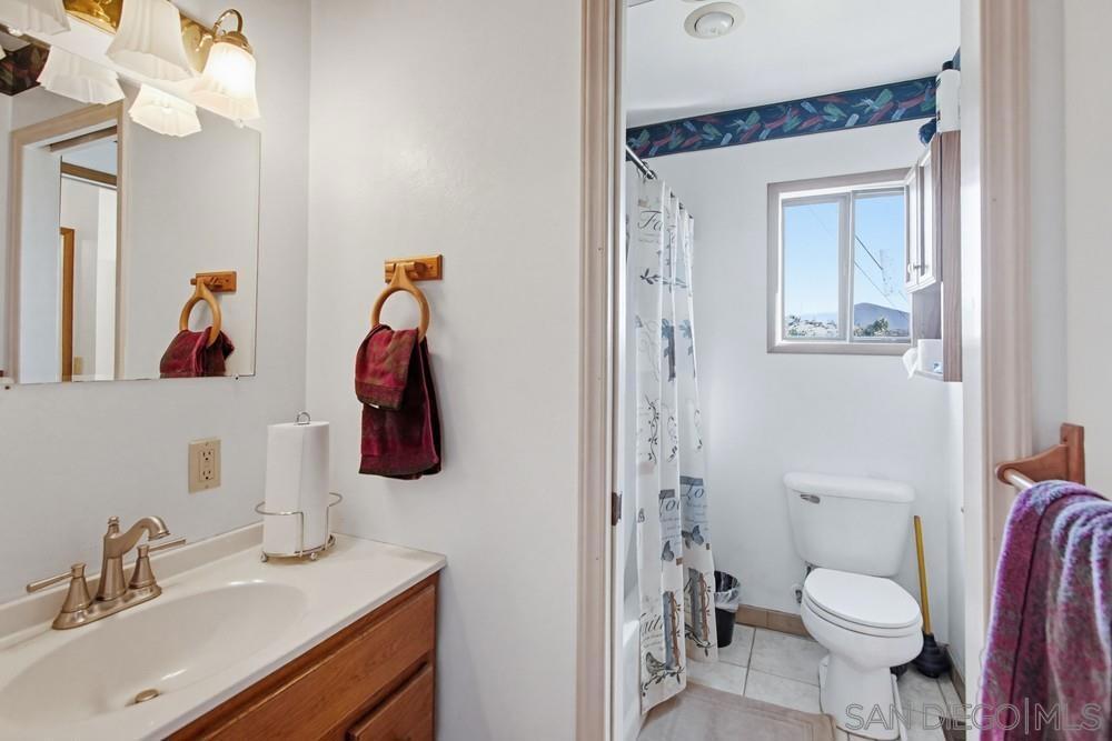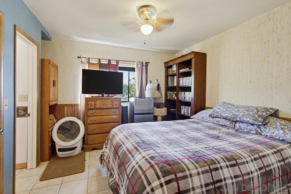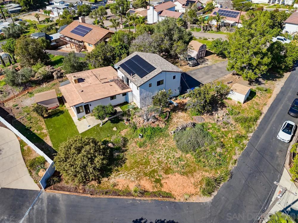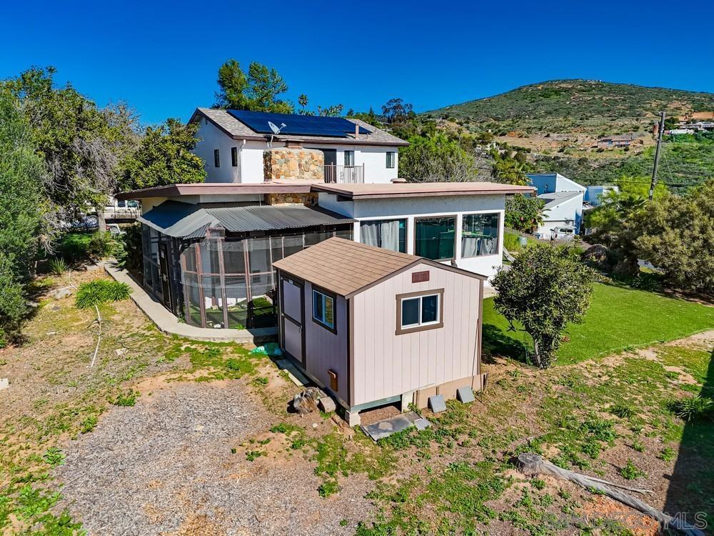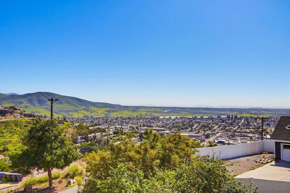 Enjoy breathtaking, unobstructed views stretching from Mexico to Downtown San Diego, Coronado & Point Loma, with the added of bonus of tranquil lake views—all from this expansive ¾-acre, mostly level lot. This is a rare opportunity to own a view property offering space, privacy & endless potential. The home features 4 BD + enclosed sunroom, 3 BA, & a 4-car tandem garage, along with paid-off solar for long-term energy savings. The main living area is filled with character, showcasing soaring wood-beam ceilings, a dramatic floor-to-ceiling stone fireplace, & walls of windows that frame the spectacular ocean & city views. A separate dining room flows into the enclosed sunroom, surrounded by windows & offering a private exterior access—ideal for relaxing, entertaining, or future indoor-outdoor living. A downstairs bedroom & full bath provide flexibility for guests or multigenerational living. Upstairs you’ll find 3 additional BDRMs with jack & jill bath, including a spacious primary suite with a private balcony capturing sweeping panoramic views from Mexico to Point Loma. The primary bath includes a separate tub & shower. The property also includes 3 outbuildings, one with a loft perfect for storage, workshop, studio, or creative space. The partially fenced, flat usable lot offers room to expand, garden, add a pool, or customize to your vision. This home presents an exceptional opportunity to update, personalize, & build equity in a premier view location ideal for buyers looking to create their dream estate while capturing some of the most iconic views San Diego has to offer.