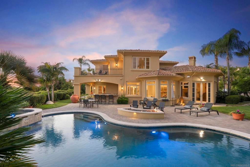 Set within the prestigious, guard-gated Del Mar Country Club, 14480 Bellvista is a refined estate offering timeless elegance, panoramic golf course and ocean views, and an elevated Rancho-coastal aesthetic in the heart of Rancho Santa Fe. Nestled in the scenic San Dieguito River Valley, this expansive 7,376-square-foot residence enjoys a coveted southwest orientation, capturing golden light and unforgettable sunset ocean and fairway vistas. Recently enhanced with thoughtful updates, the home showcases a remodeled chef’s kitchen and a beautifully reimagined family great room, ideal for both grand entertaining and everyday living. Vaulted, beamed ceilings and walls of glass create a light-filled, airy ambiance, while elevated finishes throughout reflect a sophisticated blend of Rancho heritage and coastal refinement. The residence offers five spacious en-suite bedrooms, including a luxurious primary suite complete with a fireplace and private balcony overlooking the golf course. An additional wood-paneled executive office with fireplace provides a distinguished work-from-home retreat. Outdoors, a private pool with fire table sets the stage for resort-style living and evening gatherings beneath the San Diego sky. Residents who choose to become Members of Del Mar Country Club enjoy world-class amenities including championship golf, tennis and pickleball courts, an Olympic sized pool, and an active social calendar, all within a secure, gated enclave. Access to top-rated public and private schools and a premier North County San Diego location! Set within the prestigious, guard-gated Del Mar Country Club, 14480 Bellvista is a refined estate offering timeless elegance, panoramic golf course and ocean views, and an elevated Rancho-coastal aesthetic in the heart of Rancho Santa Fe. Nestled in the scenic San Dieguito River Valley, this expansive 7,376-square-foot residence enjoys a coveted southwest orientation, capturing golden light and unforgettable sunset ocean and fairway vistas. Recently enhanced with thoughtful updates, the home showcases a remodeled chef’s kitchen and a beautifully reimagined family great room, ideal for both grand entertaining and everyday living. Vaulted, beamed ceilings and walls of glass create a light-filled, airy ambiance, while elevated finishes throughout reflect a sophisticated blend of Rancho heritage and coastal refinement. The residence offers five spacious en-suite bedrooms, including a luxurious primary suite complete with a fireplace and private balcony overlooking the golf course. An additional wood-paneled executive office with fireplace provides a distinguished work-from-home retreat. Outdoors, a private pool with fire table sets the stage for resort-style living and evening gatherings beneath the San Diego sky. Residents who choose to become Members of Del Mar Country Club enjoy world-class amenities including championship golf, tennis and pickleball courts, an Olympic sized pool, and an active social calendar—all within a secure, gated enclave. Access to top-rated public and private schools and a premier North County San Diego location just minutes to the coast, Del Mar Village, and major thoroughfares completes this exceptional offering. A rare opportunity to experience elevated country club living with coastal and golf course views, sunsets, and privacy. 14480 Bellvista is Rancho Santa Fe Southern California living at its finest.