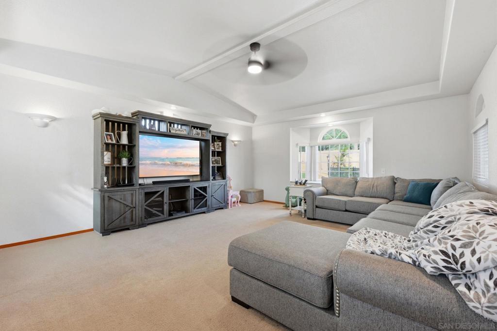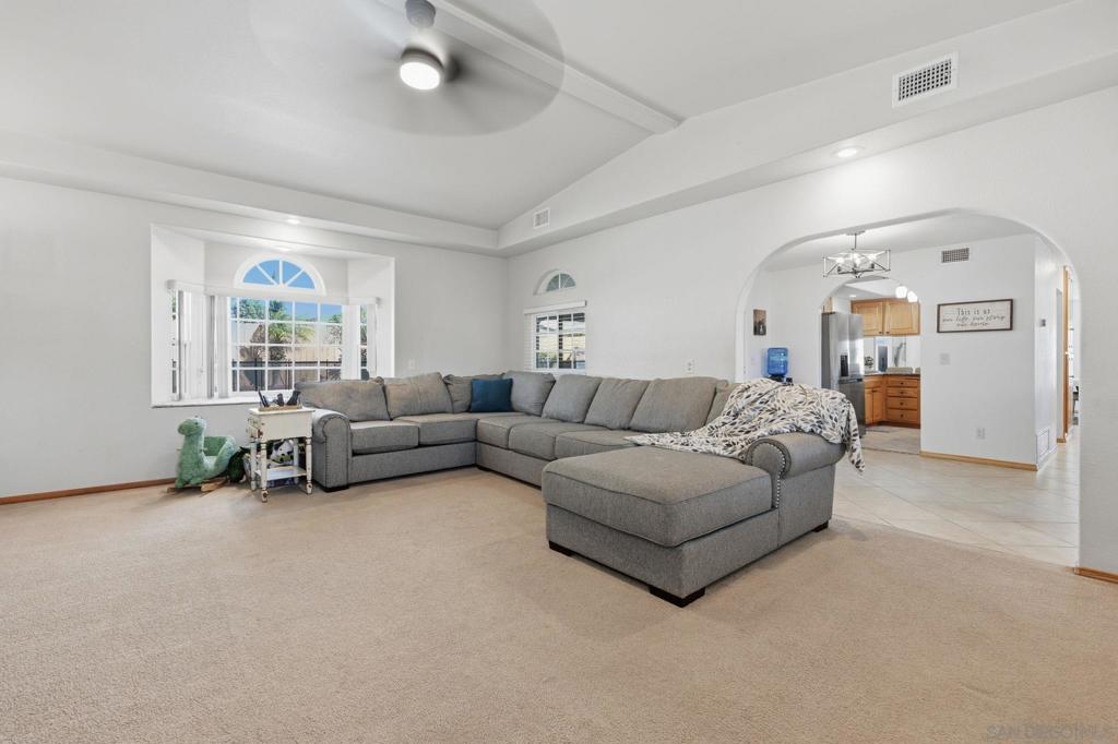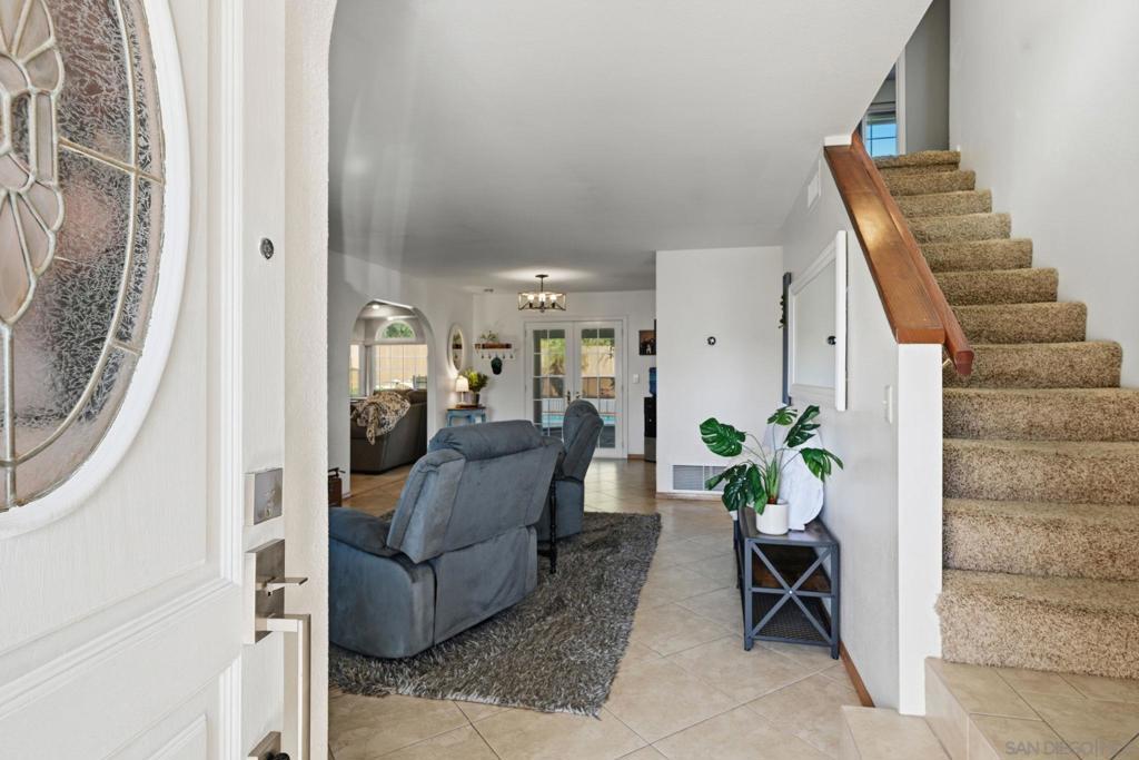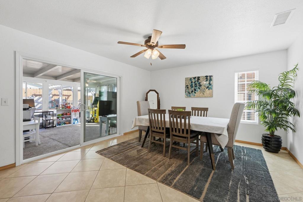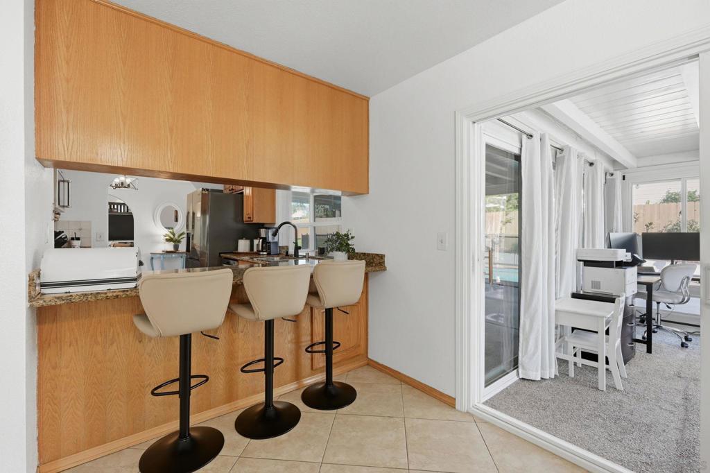 Resort-style living takes center stage in this thoughtfully updated Santee home, where an owned solar system and private pool create a comfortable, energy-conscious lifestyle from day one. Tucked away on a quiet cul-de-sac, this 4-bedroom plus bonus room, 2.5-bath residence offers 2,110 square feet of well-designed living space on a 7,528 square foot lot. Inside, the layout includes well-defined living areas with distinct spaces for living, dining, and gathering. Dual-pane windows and a freshly painted interior enhance natural light and comfort throughout. The updated kitchen serves as a functional hub with granite countertops and stainless steel appliances, connecting easily to the main living spaces for effortless flow. A bonus sunroom provides flexible use as a home office, playroom, or relaxation space, adding valuable versatility. Outside, the entertainer’s backyard is designed for year-round enjoyment with a solar-heated pool, expansive covered patio, outdoor kitchen, grassy area, and play set, offering space to relax or host with ease. Major system updates include owned solar, a new roof, HVAC system, and solar pool water heating installed in 2022, along with a new water heater added in 2024, offering improved efficiency and added peace of mind. Conveniently located close to schools and everyday amenities, this move-in ready home delivers the indoor-outdoor lifestyle Santee is known for.