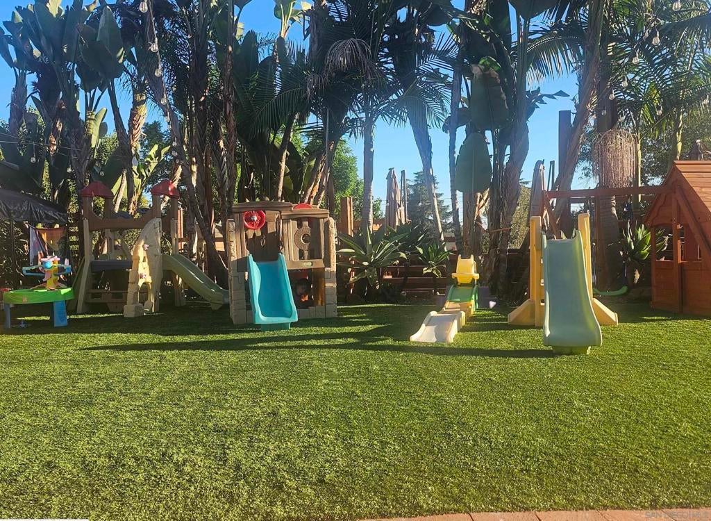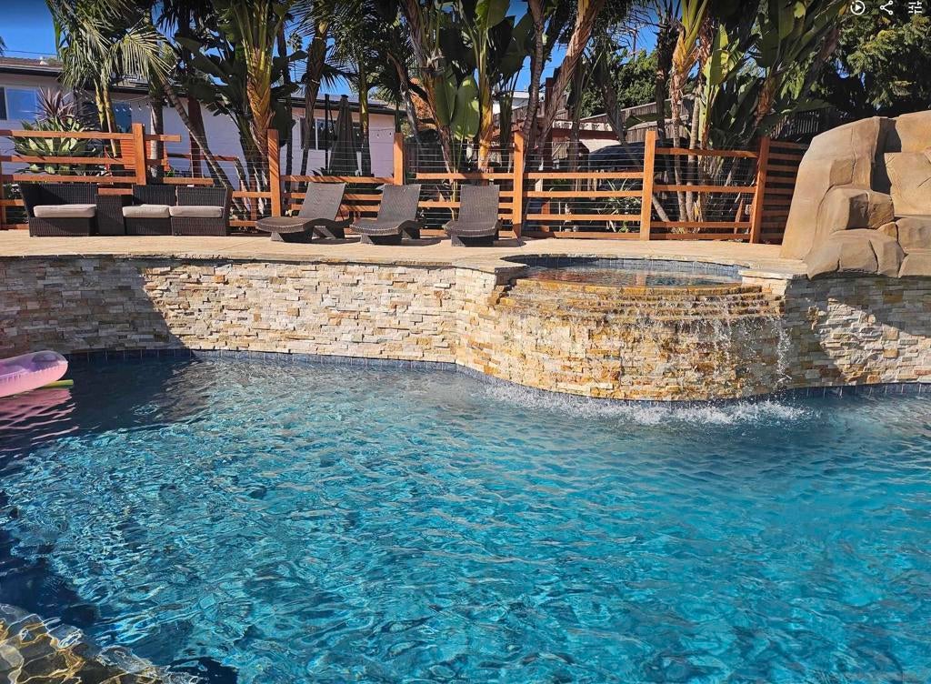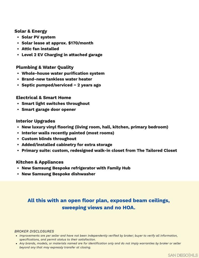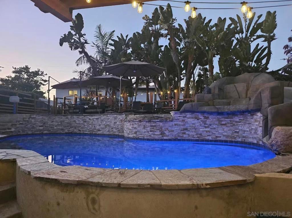 Extensively upgraded home with resort style, custom pool & 8-person spa with lighting, PebbleTec, saltwater system, Wi-Fi controls, decorative slide & waterfall. Solar pool and spa heating for year-round enjoyment. Outdoor kitchen and full outdoor bathroom, integrated gas fireplace and grill, huge play structure & two pergolas. Large lot! Stunning inside with vaulted, exposed beam ceilings, open floor plan, gorgeous kitchen with large center island. Primary suite upgraded with expansive closet system from Tailored Closet. Modern conveniences include Level-2 EV charging, mew Samsung Bespoke appliances, smart switches & smart garage. Thoughtful upgrades: new custom stamped-concrete driveway, luxury vinyl plank flooring, brand-new tankless water heater, whole-house filtration, beautiful landscape & lighting, and a 6-ton central AC (installed 2017). See documents for the complete improvements list. 2017 down-to-the-studs renovation with ongoing, owner-added upgrades since. No HOA. Solar lease.