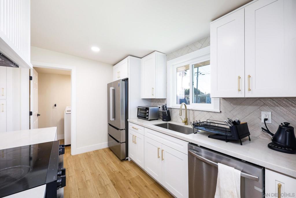 Remodel + AUD near the beach! Welcome to 1128 Hemlock Avenue, a fully reimagined coastal property featuring two separate residences on an oversized, flat lot in the heart of Imperial Beach. This turnkey offering includes a beautifully remodeled 3-bedroom, 2-bath main home plus a fully finished 1-bedroom, 1-bath ADU with its own private entrance—a flexible setup built for how people live and invest today. The main residence features a thoughtfully designed open-concept layout with updated flooring, refined countertops, tailored cabinetry, and elevated lighting throughout. The kitchen connects effortlessly to the dining and living areas, creating a bright, welcoming atmosphere perfect for gatherings or comfortable daily living. The ADU mirrors the quality and style of the main home, making it perfect for multigenerational living, guest accommodations, or rental income—long-term or otherwise (buyer to verify). ADU is permitted with separate entrance and laundry. Few properties offer this level of versatility without compromise. Outside, the expansive lot unlocks endless potential: create a private outdoor retreat, add a pool, expand gardens, or simply enjoy the space—something increasingly rare this close to the coast. All of this is just minutes from the beach, with easy access to shopping, dining, schools, and major routes. Whether you’re an owner-occupant looking to offset your mortgage or an investor seeking a high-demand coastal asset, this is a standout opportunity. Smart. Stylish. Flexible.