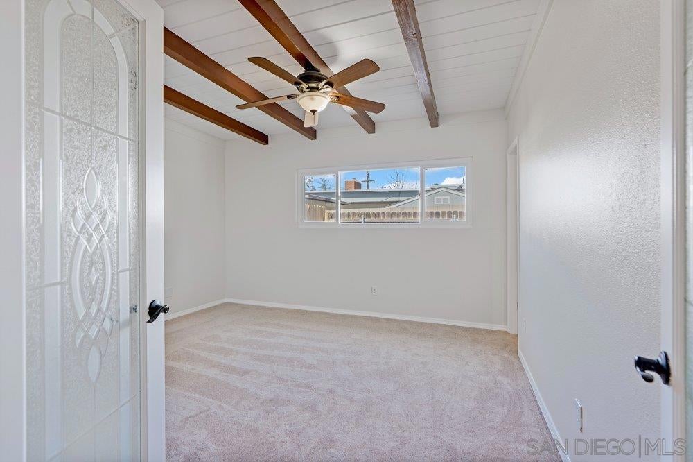 This charming single story home is ready for you to move in. 3 bedrooms and 2 bath. New carpet and paint, AC, high open beam ceiling in the primary room. Large flat yard with plenty of room for entertaining. Even room for an ADU or home expansion.