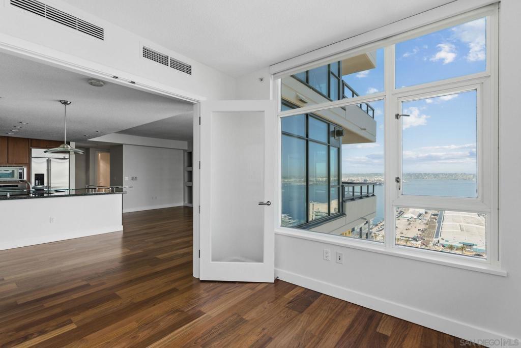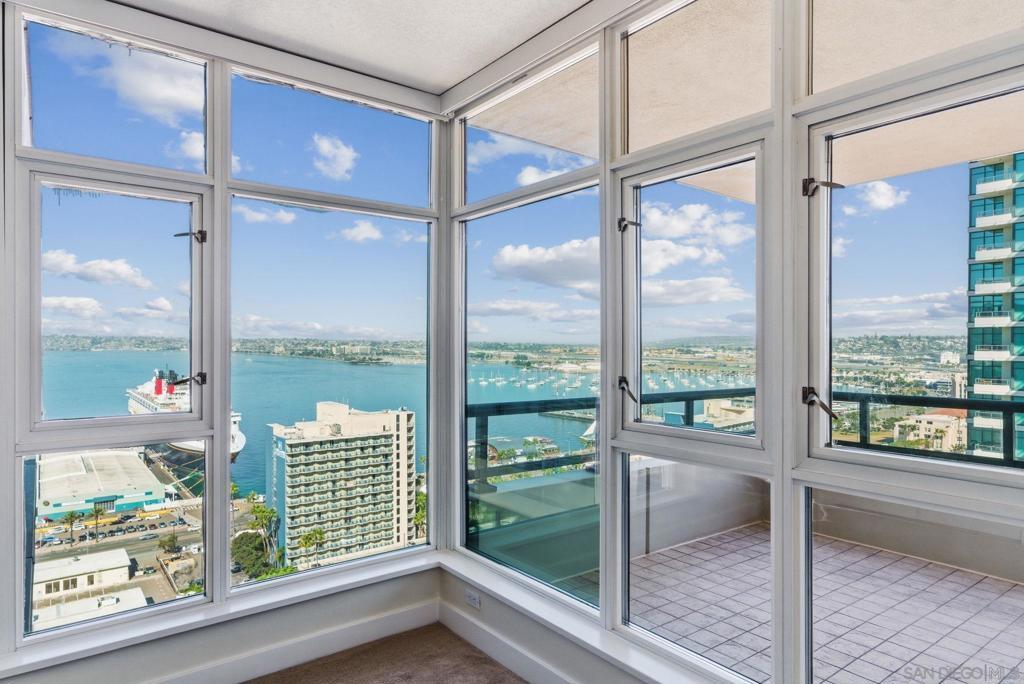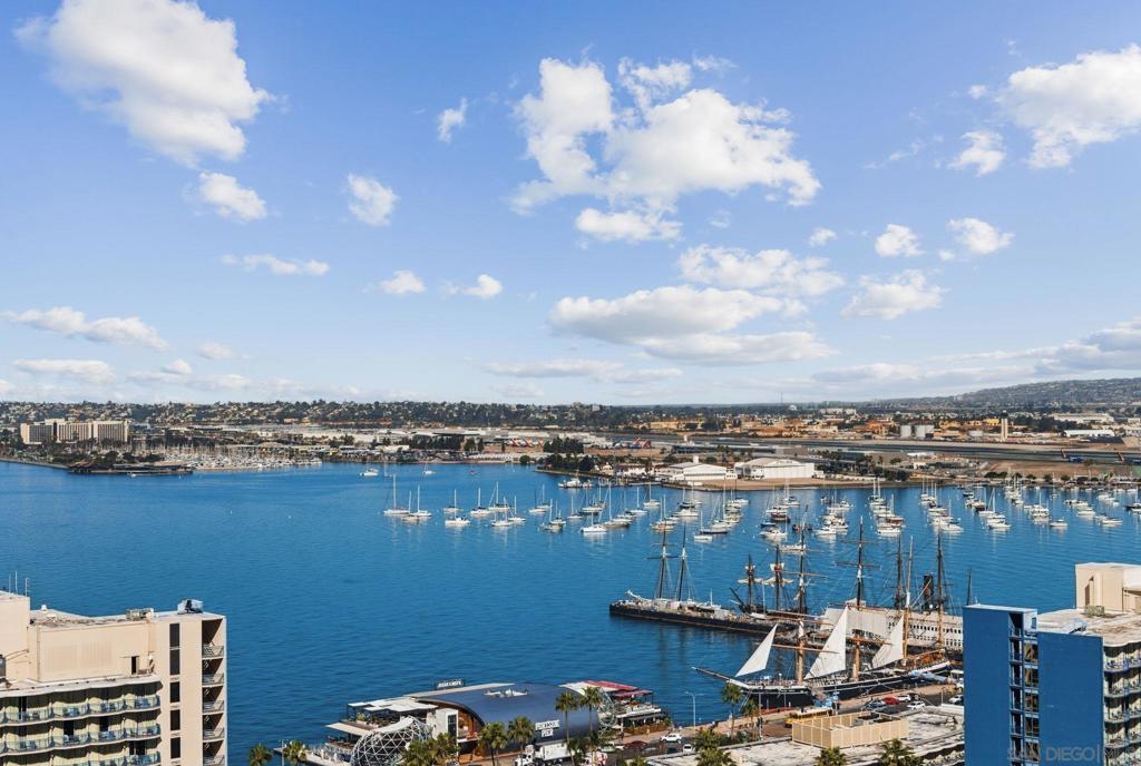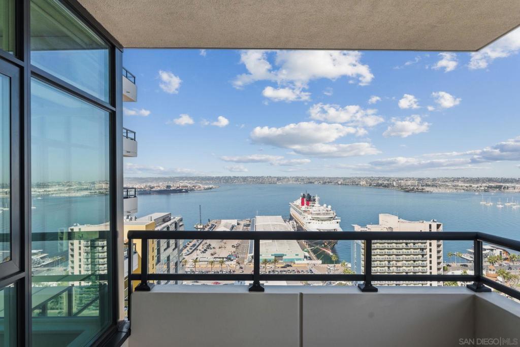 Turn-key 2 bed + den, 2 bath 23rd floor residence at The Grande South offers elevated downtown living with breathtaking panoramic views. Perched high above the city, the home captures sweeping vistas of the downtown skyline, glittering city lights, and San Diego Bay, creating a dramatic backdrop from day to night. The residence features an large open-concept living space filled with natural light, expansive windows that frame the views, and a seamless flow onto the private terrace. Residents of The Grande South enjoy full-service amenities, including security, concierge services, fitness center, pool and spa, and a prime location just steps from the waterfront, Seaport Village, the Gaslamp Quarter, dining, shopping, and entertainment. A perfect blend of convenience, sophistication, and iconic San Diego views.
