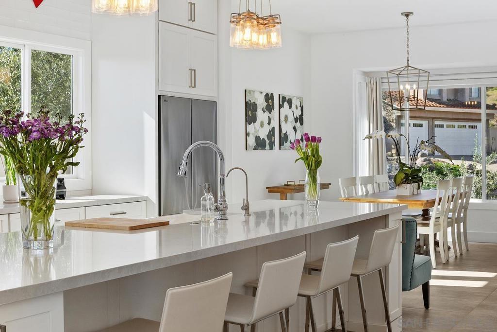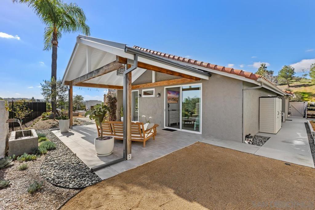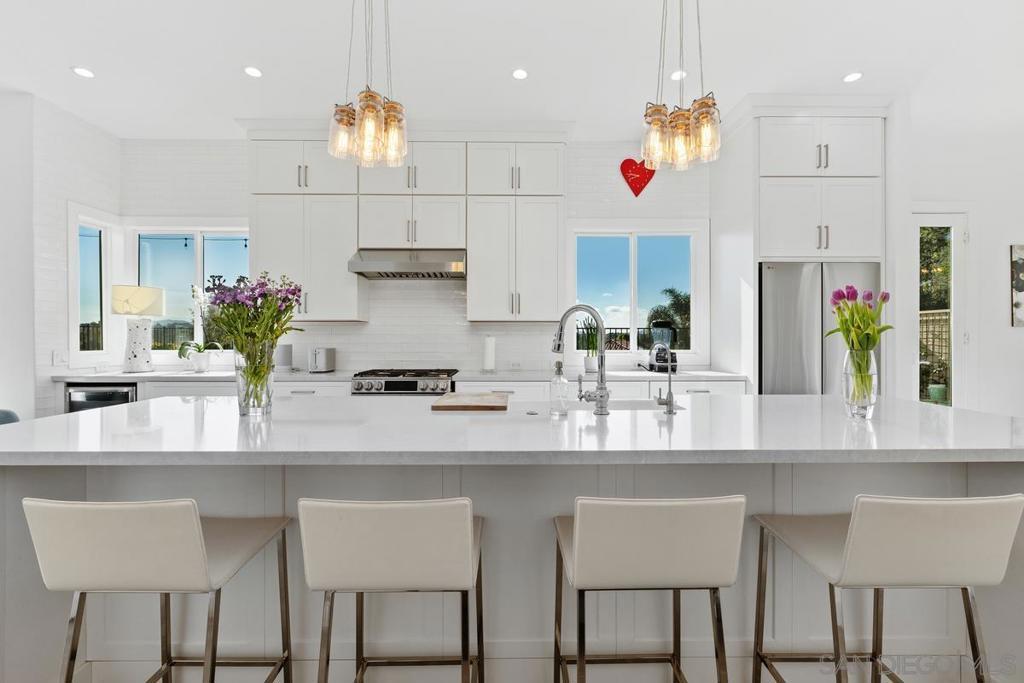 Perched atop Falcon Hill on a premier peninsula lot, this stunning single-story home captures sweeping 180-degree mountain and hill views with refreshing coastal breezes. With no Mello Roos and a low HOA, this is a rare opportunity not to miss. Buena Vista Park with is scenic trails and a peaceful duck pond is directly across the street. Ideally located just 15 minutes to Carlsbad Beach and 5 minutes to the Carlsbad Research & Business Center, (SoCal’s Silicon Valley) with major shopping and dining all within 5–10 minutes. Completely remodeled and truly turnkey, the home features 10-foot ceilings, a custom marble fireplace, and an oversized island anchoring the Great Room. The chef’s kitchen showcases white shaker soft-close cabinetry, quartz countertops, Kohler fixtures, and porcelain tile flooring throughout. The primary suite offers a vaulted ceiling and spa-inspired Carrara marble bath. New Milgard windows and doors enhance efficiency and style. Major upgrades include a new roof, 16 paid solar panels with Enphase inverter, full attic refurbishment, insulated garage door and opener, whole-house filtration with reverse osmosis, new concrete driveway and walkways, fresh exterior paint, and new fencing. The entertainer’s backyard features a covered patio with metal roof, custom gas/wood-burning fireplace with built-in seating, matching water feature, drought-tolerant landscaping, four producing citrus trees, and raised garden beds. Enjoy 4th of July fireworks from your own backyard. A beautifully upgraded view home in one of the area’s most desirable neighborhoods.