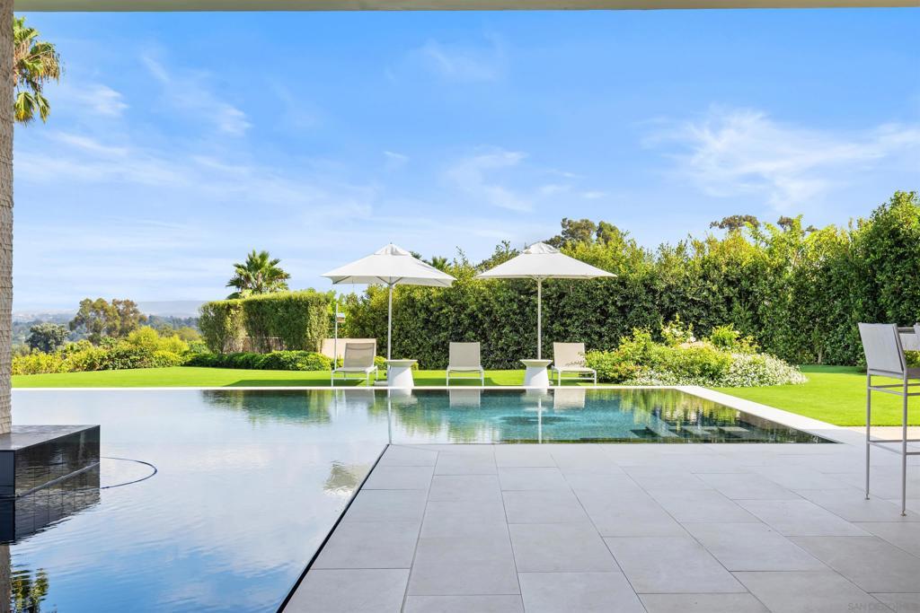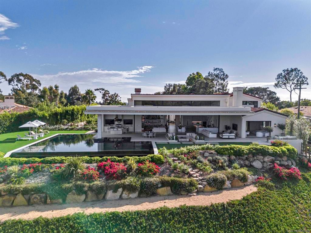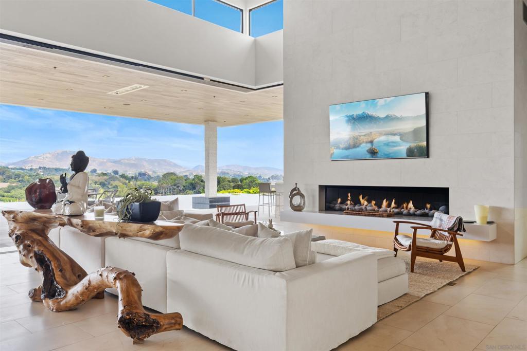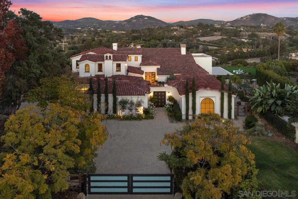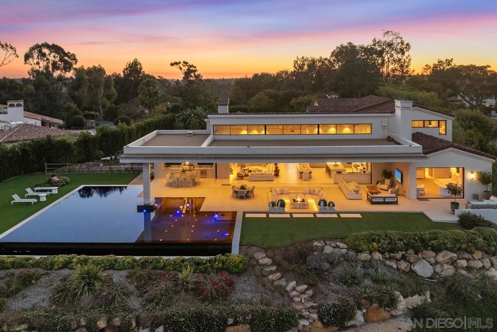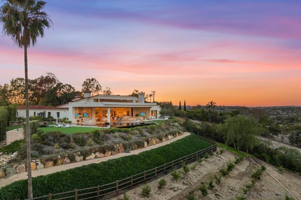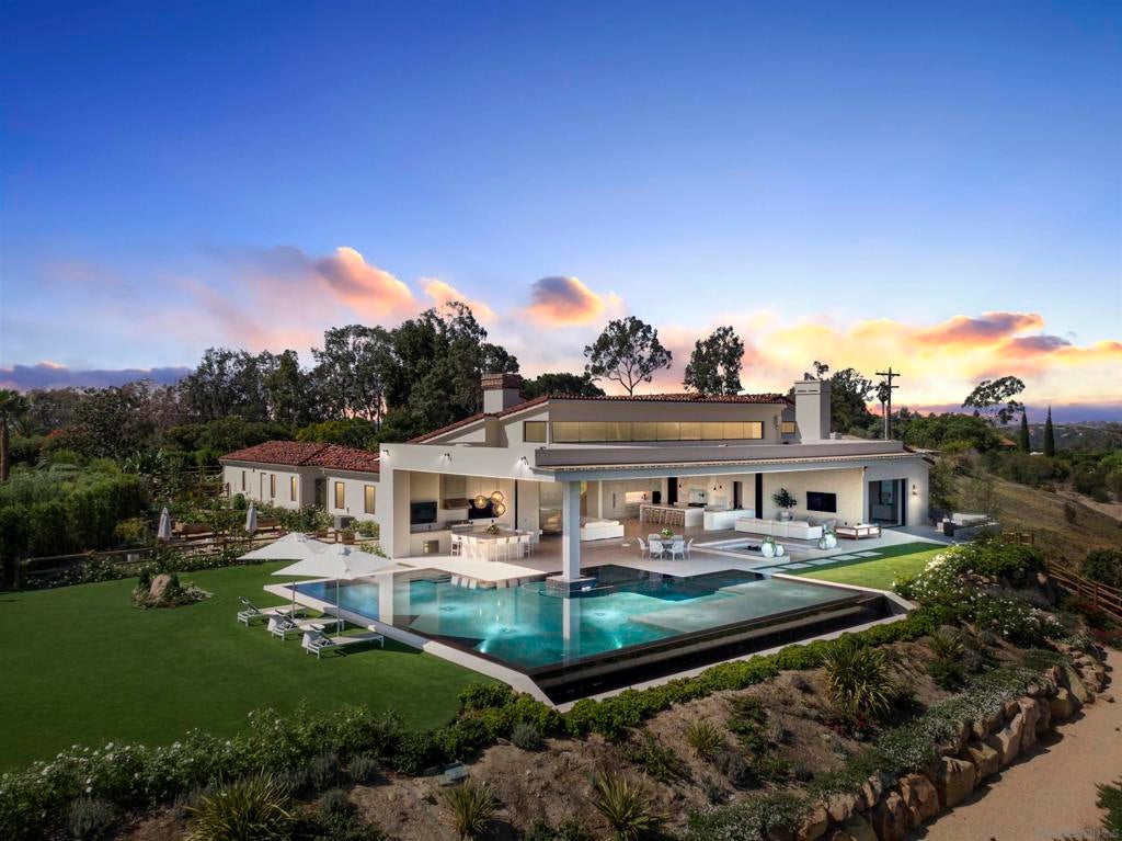 A Rare Architectural Statement Defined by a 90-Foot Glass Wall & Protected Black Sky Serenity! Privately gated and set across 3.87 acres in the prestigious Rancho Santa Fe Covenant, this extraordinary estate captures the essence of refined California living. Built by renowned builder Bill Haeling, the residence showcases timeless architecture, grand scale, and sweeping views that create a breathtaking backdrop for everyday life. Spanning approximately 8,674 square feet, the main residence is thoughtfully designed for both luxury and livability. Six ensuite bedrooms—including a main-level primary suite and an additional secondary suite—offer comfort, privacy, and flexibility. A beautifully appointed 1,032-square-foot detached guest house provides an elevated experience for visitors or extended stays. Seamless indoor-outdoor living defines the home. Expansive vanishing glass doors open to a 2,200-square-foot covered loggia complete with integrated heaters, a fireside lounge, and a chef-inspired outdoor kitchen with Wolf appliances. The custom infinity-edge pool and spa appear to merge with the horizon, while curated outdoor spaces invite relaxation and unforgettable entertaining. A flourishing orchard of over 300 citrus trees enhances the estate’s natural beauty, while the grounds offer both tranquility and opportunity—including plans for future sports courts. Every detail reflects thoughtful design, quality craftsmanship, and a commitment to lifestyle. Nothing compares to the home’s 90-foot floor-to-ceiling disappearing glass wall, seamlessly blending indoor and outdoor living while showcasing panoramic views by day and, under the Black Sky ordinance, extraordinary star-filled skies by night.Offering a rare combination of privacy, scale, and natural beauty, this exceptional estate embodies the Rancho Santa Fe lifestyle at its finest. With thoughtfully designed spaces, seamless indoor-outdoor flow, and captivating views, the property provides an ideal setting for both relaxed daily living and memorable entertaining. A truly special opportunity to enjoy comfort, elegance, and the serenity of Covenant living in one remarkable residence.
