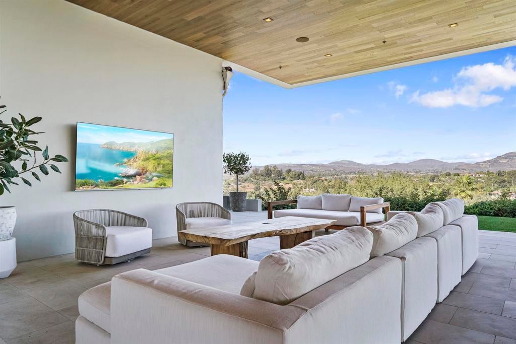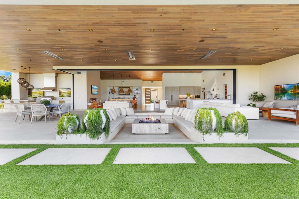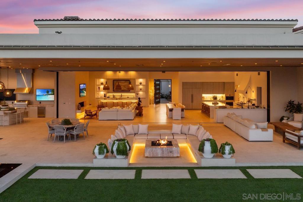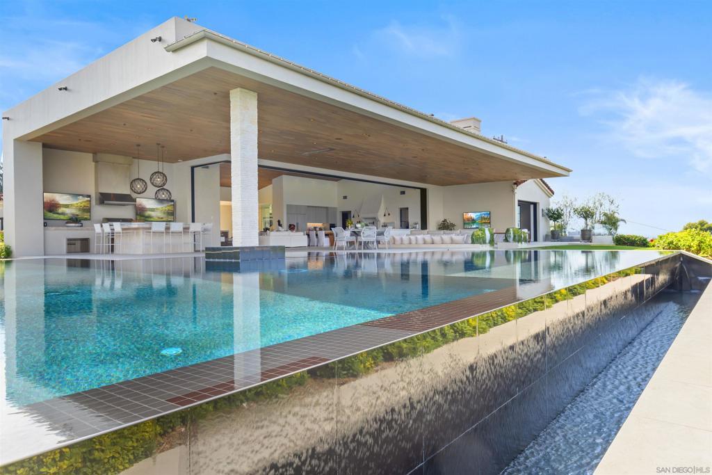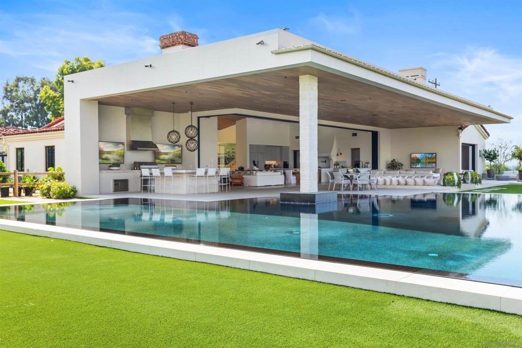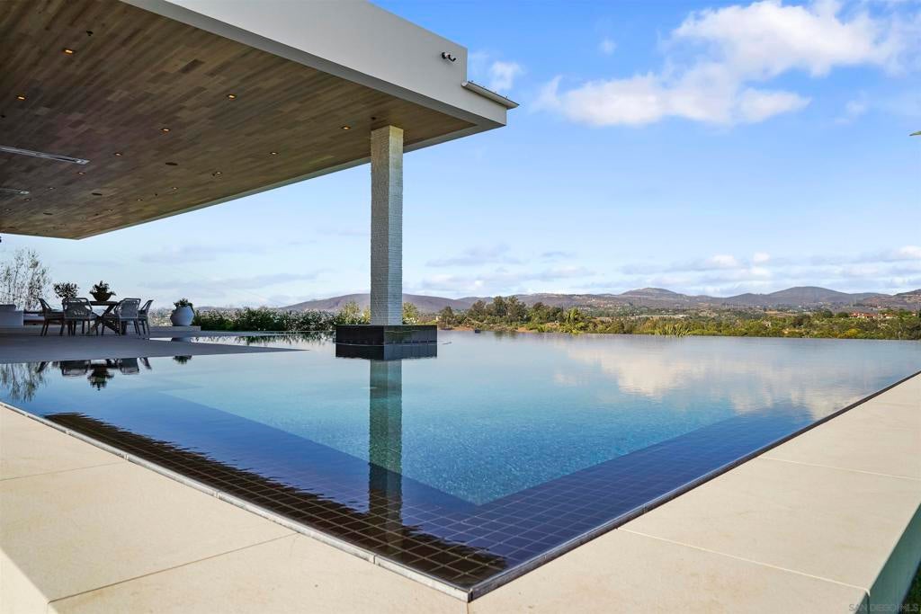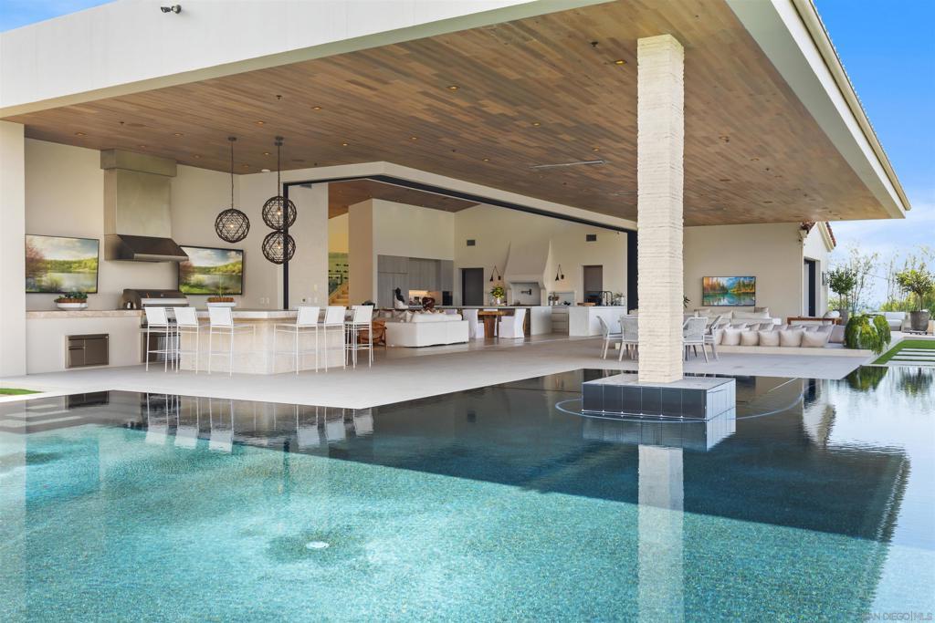 A Rare Architectural Statement Defined by a 90-Foot Glass Wall & Protected Black Sky Serenity! Privately gated and set across 3.87 acres in the prestigious Rancho Santa Fe Covenant, this extraordinary estate captures the essence of refined California living. Built by renowned builder Bill Haeling, the residence showcases timeless architecture, grand scale, and sweeping views that create a breathtaking backdrop for everyday life. Spanning approximately 8,674 square feet, the main residence is thoughtfully designed for both luxury and livability. Six ensuite bedrooms—including a main-level primary suite and an additional secondary suite—offer comfort, privacy, and flexibility. A beautifully appointed 1,032-square-foot detached guest house provides an elevated experience for visitors or extended stays. Seamless indoor-outdoor living defines the home. Expansive vanishing glass doors open to a 2,200-square-foot covered loggia complete with integrated heaters, a fireside lounge, and a chef-inspired outdoor kitchen with Wolf appliances. The custom infinity-edge pool and spa appear to merge with the horizon, while curated outdoor spaces invite relaxation and unforgettable entertaining. A flourishing orchard of over 300 citrus trees enhances the estate’s natural beauty, while the grounds offer both tranquility and opportunity—including plans for future sports courts. Every detail reflects thoughtful design, quality craftsmanship, and a commitment to lifestyle. Nothing compares to the home’s 90-foot floor-to-ceiling disappearing glass wall, seamlessly blending indoor and outdoor living while showcasing panoramic views by day and, under the Black Sky ordinance, extraordinary star-filled skies by night.Offering a rare combination of privacy, scale, and natural beauty, this exceptional estate embodies the Rancho Santa Fe lifestyle at its finest. With thoughtfully designed spaces, seamless indoor-outdoor flow, and captivating views, the property provides an ideal setting for both relaxed daily living and memorable entertaining. A truly special opportunity to enjoy comfort, elegance, and the serenity of Covenant living in one remarkable residence.