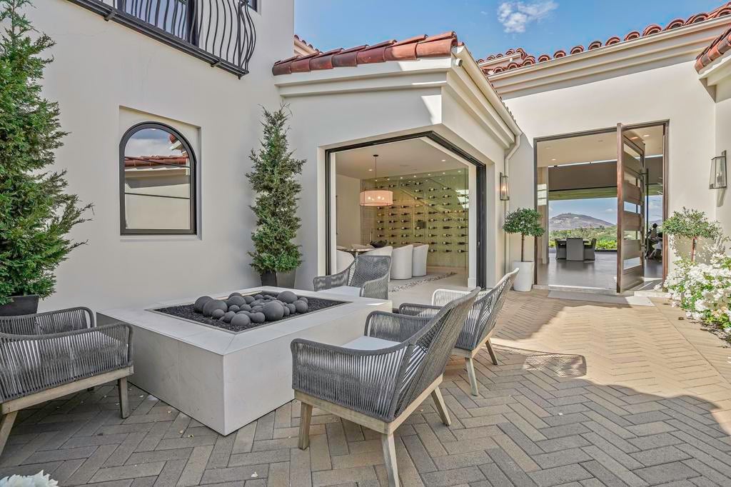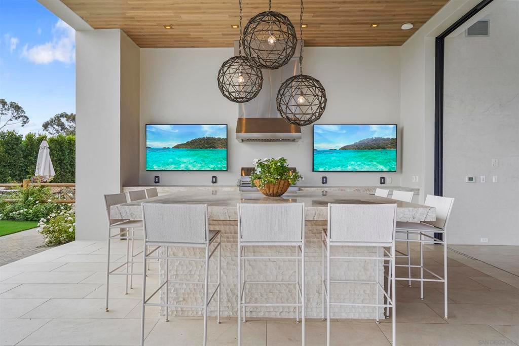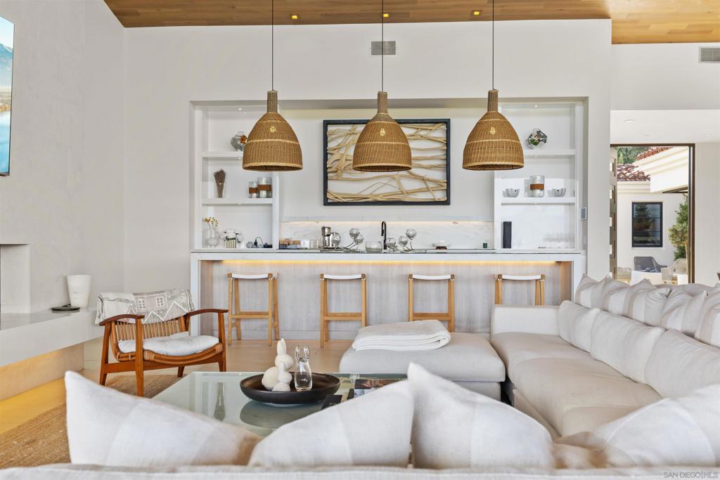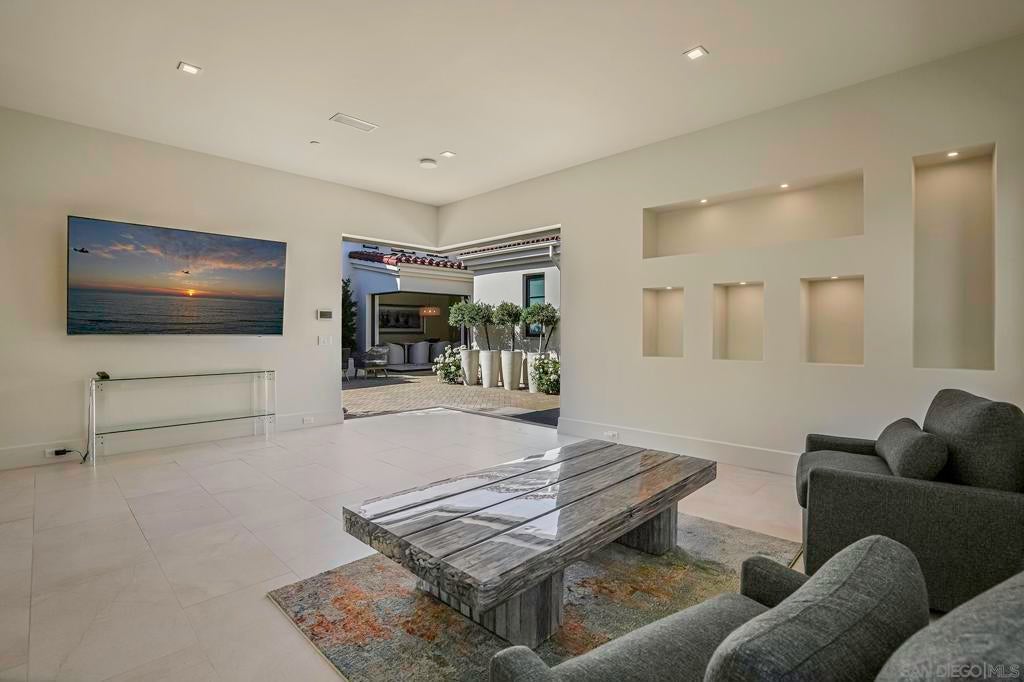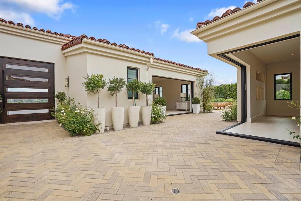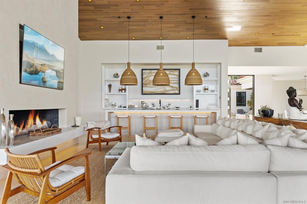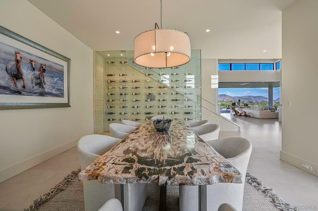 A Rare Architectural Statement Defined by a 90-Foot Glass Wall & Protected Black Sky Serenity! Privately gated and set across 3.87 acres in the prestigious Rancho Santa Fe Covenant, this extraordinary estate captures the essence of refined California living. Built by renowned builder Bill Haeling, the residence showcases timeless architecture, grand scale, and sweeping views that create a breathtaking backdrop for everyday life. Spanning approximately 8,674 square feet, the main residence is thoughtfully designed for both luxury and livability. Six ensuite bedrooms—including a main-level primary suite and an additional secondary suite—offer comfort, privacy, and flexibility. A beautifully appointed 1,032-square-foot detached guest house provides an elevated experience for visitors or extended stays. Seamless indoor-outdoor living defines the home. Expansive vanishing glass doors open to a 2,200-square-foot covered loggia complete with integrated heaters, a fireside lounge, and a chef-inspired outdoor kitchen with Wolf appliances. The custom infinity-edge pool and spa appear to merge with the horizon, while curated outdoor spaces invite relaxation and unforgettable entertaining. A flourishing orchard of over 300 citrus trees enhances the estate’s natural beauty, while the grounds offer both tranquility and opportunity—including plans for future sports courts. Every detail reflects thoughtful design, quality craftsmanship, and a commitment to lifestyle. Nothing compares to the home’s 90-foot floor-to-ceiling disappearing glass wall, seamlessly blending indoor and outdoor living while showcasing panoramic views by day and, under the Black Sky ordinance, extraordinary star-filled skies by night.Offering a rare combination of privacy, scale, and natural beauty, this exceptional estate embodies the Rancho Santa Fe lifestyle at its finest. With thoughtfully designed spaces, seamless indoor-outdoor flow, and captivating views, the property provides an ideal setting for both relaxed daily living and memorable entertaining. A truly special opportunity to enjoy comfort, elegance, and the serenity of Covenant living in one remarkable residence.