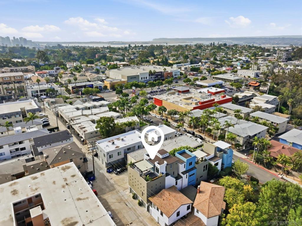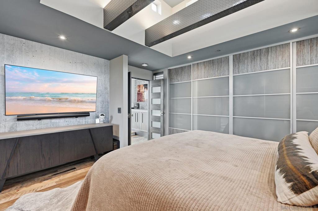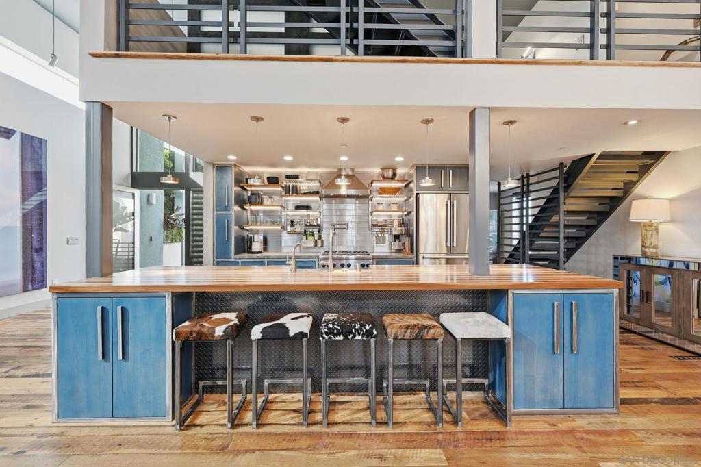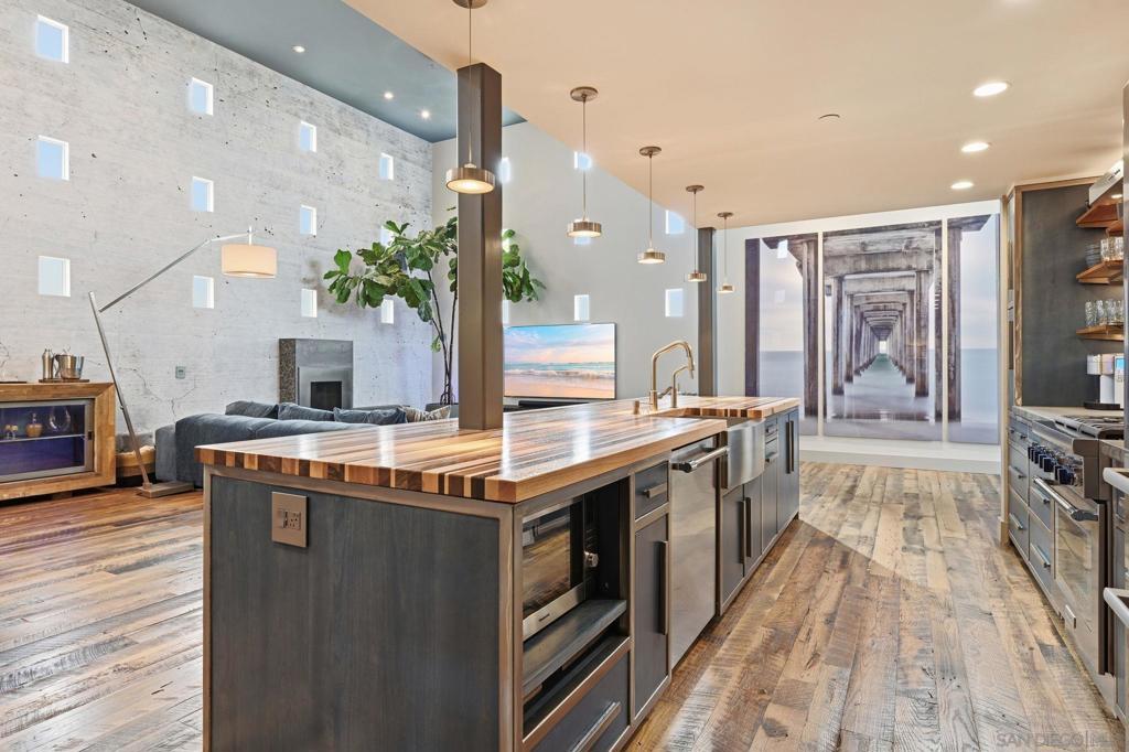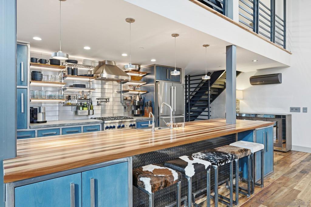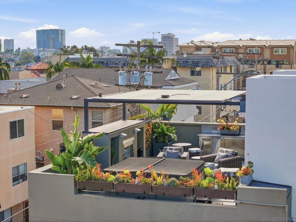 Welcome to 4065 Brant St where modern industrial luxury meets the ultimate in custom finishes and design! This one of a kind townhome, in the heart of Mission Hills, features 2-bedrooms and 3-bath on 2149 square feet, where quality and craftsmanship are rarely seen and custom details define every space. Step inside to soaring 16-foot ceilings and a dramatic great room designed to impress. Flooded with natural light, the expansive living area is anchored by rich reclaimed barn wood floors! The kitchen commands attention with its bold, architectural presence. Anchored by a distinctive exotic hardwood island, it’s paired with smooth concrete countertops and illuminated open shelving that adds depth and visual drama. The design effortlessly marries raw industrial elements with polished, modern refinement—creating a space that is as practical as it is captivating for entertaining, daily living, and everything in between. The roof top patio offers sweeping views over the city and with its spa, fireplace, outdoor TV, outdoor kitchen and ample seating, it's the perfect spot to relax or entertain day and night!