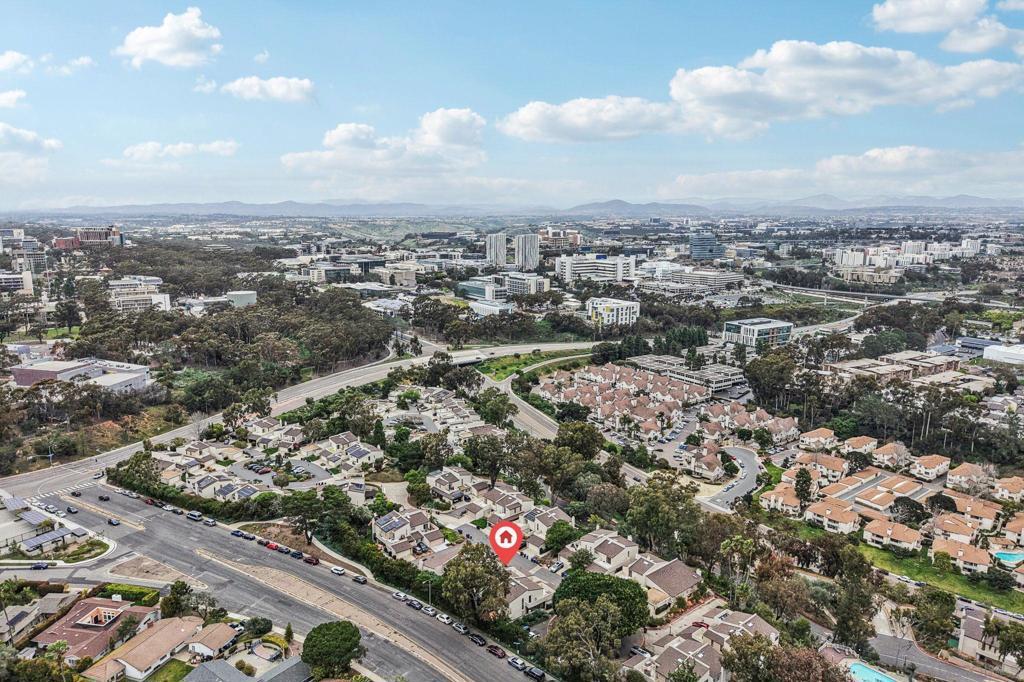 PRIME LA JOLLA SHORES HEIGHTS LOCATION * WEST OF THE 5 FREEWAY * LARGE TOWNHOME ONLY SHARING ONE WALL * BEAUTIFULLY UPGRADED BONUS ROOM DOWNSTAIRS * LARGE BACKYARD * 2 CAR ATTACHED GARAGE WITH EXTRA OUTDOOR PARKING SPACE! Beautifully upgraded and truly impressive, this home makes a stunning first impression the moment you walk through the door, showcasing quality finishes, thoughtful updates, and a layout perfectly designed for comfortable living and entertaining. The fully remodeled kitchen is a standout, featuring gray shaker cabinetry, abundant counter space, sleek quartz countertops, stainless steel appliances, and elegant hardware paired with a striking gold-bronze faucet that adds the perfect designer touch. Throughout the home you’ll find upgraded flooring, crown molding, recessed lighting, 3 skylights that bring in natural light, and a large fireplace anchoring the living room, while a separate family room provides additional space to relax or gather. A versatile optional room or den on the first floor offers flexibility for guests, a home office, or multi-generational living.Upstairs, three spacious bedrooms feature vaulted ceilings that enhance the open, airy feel. The primary suite is truly special, complete with its own private balcony and a beautifully upgraded bathroom boasting a double vanity, soaking tub, matching tile accents, and a walk-in closet. The hall bathroom is equally refined with a designer vanity and walk-in shower, and the convenient upstairs laundry closet makes daily living easy. Step outside to a large backyard that backs to a greenbelt, offering privacy and the perfect setting for entertaining, relaxing, or simply enjoying the outdoors. The two-car garage provides direct access into the home, plus an additional parking space for added convenience. Water is included in the HOA, and the brand-new roof adds even more value and peace of mind. With only one shared wall, this home has the privacy and comfort you want. All appliances convey (including washer and dryer) and 3 mounted TV's.Located in the beautifully tree-lined community of La Jolla Shores Heights, residents enjoy access to a pool, tennis court, and playground, and is just minutes from UCSD (within walking distance), UTC Mall, La Jolla Playhouse, Birch Aquarium, La Jolla Village shopping and dining, Whole Foods, Trader Joe’s, AMC, the trolley station, YMCA, parks, and the world-famous beaches of La Jolla Shores and San Diego's famous beaches. This is the total package — style, comfort, location, and lifestyle all in one!