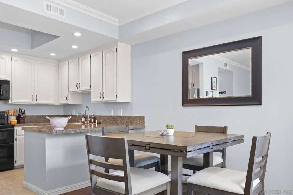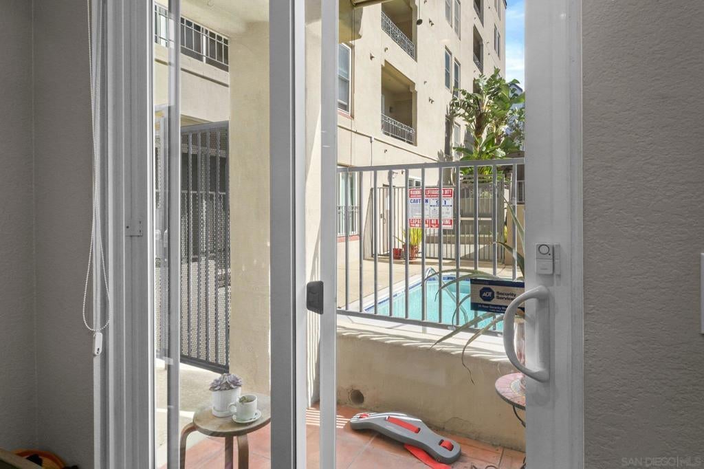 Large, centrally located 1-bedroom, ground-level home w/ TWO parking spots & in-unit washer/dryer! Designed with a breezy coastal feel, this appealing home at Villa Portofino in the heart of Bankers Hill includes high ceilings and thoughtful upgrades throughout. The open kitchen shines with granite counters, refinished cabinetry, tray ceiling, and a double oven with microwave, perfect for home chefs. Recessed, dimmable LED lighting, Hunter ceiling fans, crown molding, and a custom fireplace mantle add warmth and character, while double-pane windows and custom patio sliders with pool view enhance comfort and efficiency. This is a gated building. The spa-inspired bath features a jetted Jacuzzi tub and rain showerhead, plus a Washlet bidet toilet. The spacious bedroom offers a generous closet, and the in-unit, full-size washer and dryer provide maximum convenience. Modern touches such as custom shades and blinds, pull-down patio shade, and automatic laundry and closet lighting elevate everyday living. From your private patio, enjoy direct, no-step access to the pool, spa, BBQ area, and outdoor lounge. This upscale community is gated throughout and includes a well-equipped gym facility. Two deeded parking spaces—a rare perk for a one-bedroom—add exceptional value. Walk to Balboa Park and Little Italy’s exceptional dining, and reach downtown, Hillcrest, and the airport in minutes. This is effortless urban living with resort-style perks right outside your door. Your next chapter starts here! Furniture can convey.