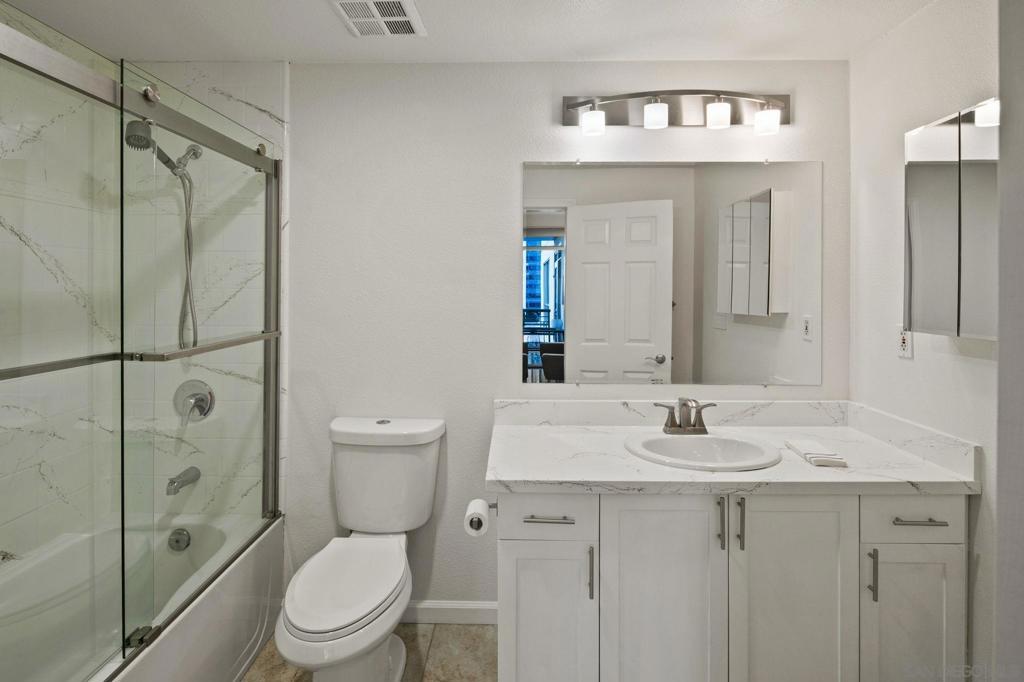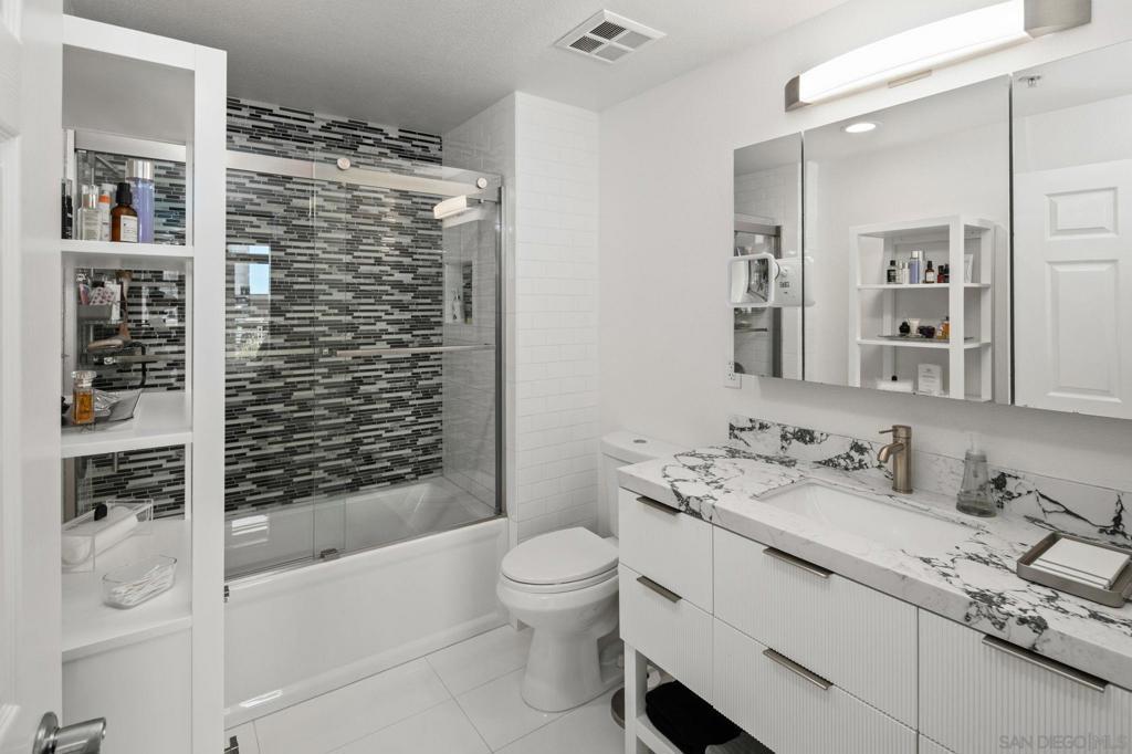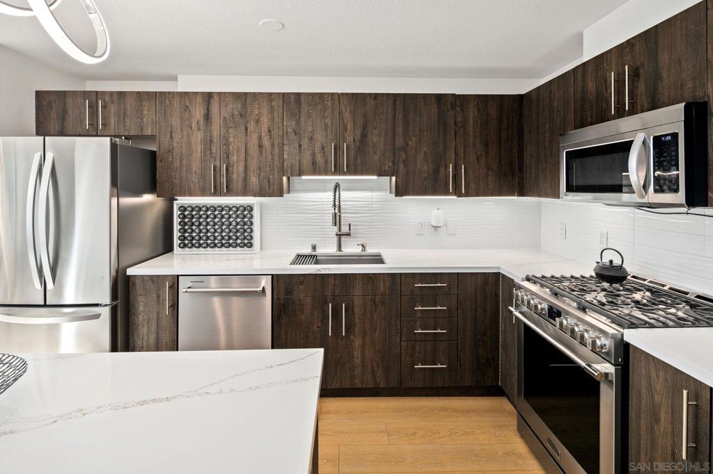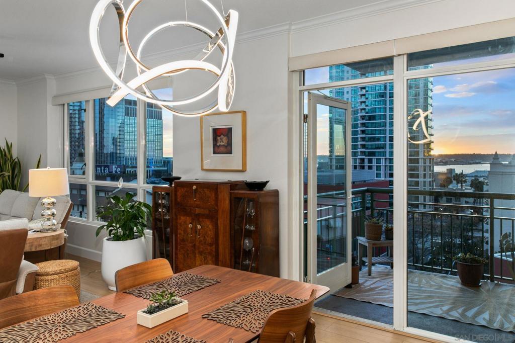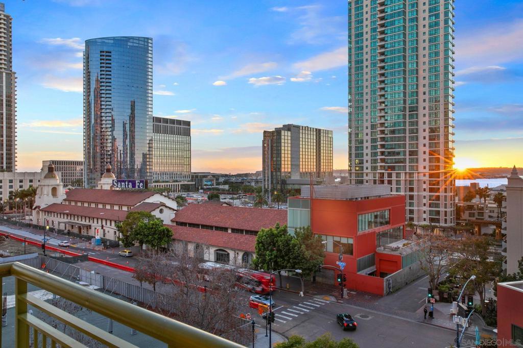 Prime southwest corner residence at Treo in the prestigious vibrant Columbia District/Little Italy, showcasing sweeping panoramic views of the downtown skyline and sparkling bay and waterfront. Offering approximately 1,441 square feet, this beautifully remodeled 2-bedroom, 2-bath plus 3rd room den/office floor plan is elevated by its desirable corner positioning and two private balconies that capture water and city views plus natural light throughout. Designed as a true turnkey opportunity, every detail has already been thoughtfully curated. Luxury vinyl plank flooring flows seamlessly throughout the home, complemented by a stunning remodeled kitchen with sleek quartz countertops, tile backsplash, designer cabinetry and stainless steel appliances. The upgraded bathrooms feature modern finishes and clean, contemporary design. Fresh interior paint enhances the light and airy aesthetic. Two secured parking spaces and dedicated storage add exceptional convenience. Ideally positioned in one of Downtown San Diego’s most walkable neighborhoods, residents enjoy effortless access to the Waterfront Park, Little Italy’s renowned dining scene, the Embarcadero, Seaport Village, Santa Fe Depot, and premier shopping and entertainment. Treo offers resort-style amenities including a lap pool and spa, state-of-the-art fitness center, resident lounge, outdoor BBQ area, on-site management, and secured entry. With its prime location, impeccable condition, and exceptional lifestyle appeal, this residence truly embodies the best of urban luxury living.