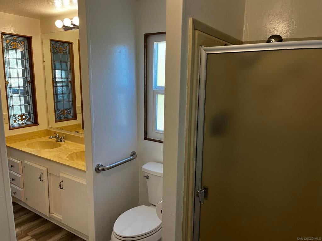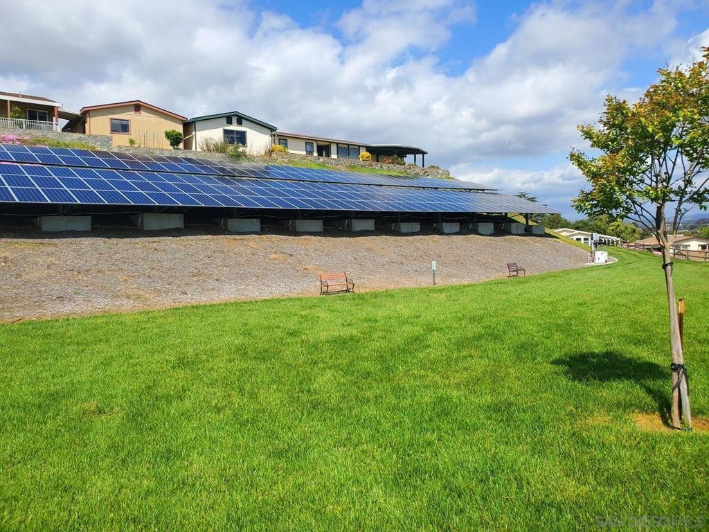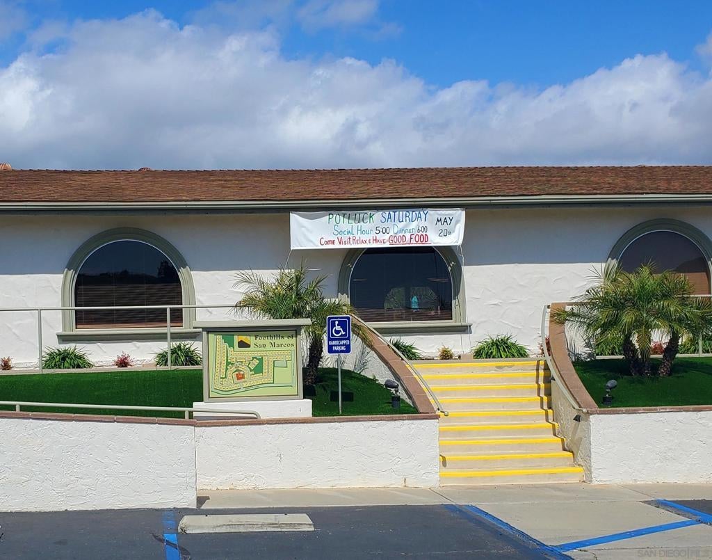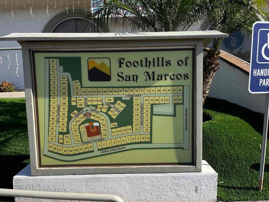 This spacious 3BR 2BA home is located in the desirable LAND-OWNED 55+ Foothills of San Marcos community. It features a 12x13 den with double folding doors, newer dual pane vinyl windows throughout with warranty, newer A/C, flooring, outlets & light switches. Two solar tubes, two skylights and the numerous vinyl windows provide lots of natural light. A newer 8x53 enclosed patio adds 424 sq. ft. of additional living space for many uses, for a total GLA of 1,960 sq. ft. Excellent location and in a superior 55+ complex! Own the land, no lease! The generously sized Primary BR with walk-in closet is at the opposite end of the other bedrooms. Primary bathroom features a double sink vanity. No interior steps or carport side. Storage shed and private backyard. Enjoy a pleasant walk up the street just four homes away to the abundant community amenities and many activities, including a beautiful pool, spa, tennis court, spacious gym & fitness center, four billiard tables, library, puzzle & card rooms, clubhouse w/full kitchen, ping-pong, horseshoe pit, BBQs, grass park, dog walking areas, on-site RV parking (for a fee), ample guest parking, solar credit for all residents. Foothills of San Marcos is close to groceries, pharmacy, shops, dining and the 78 freeway. This community is excellent senior living!