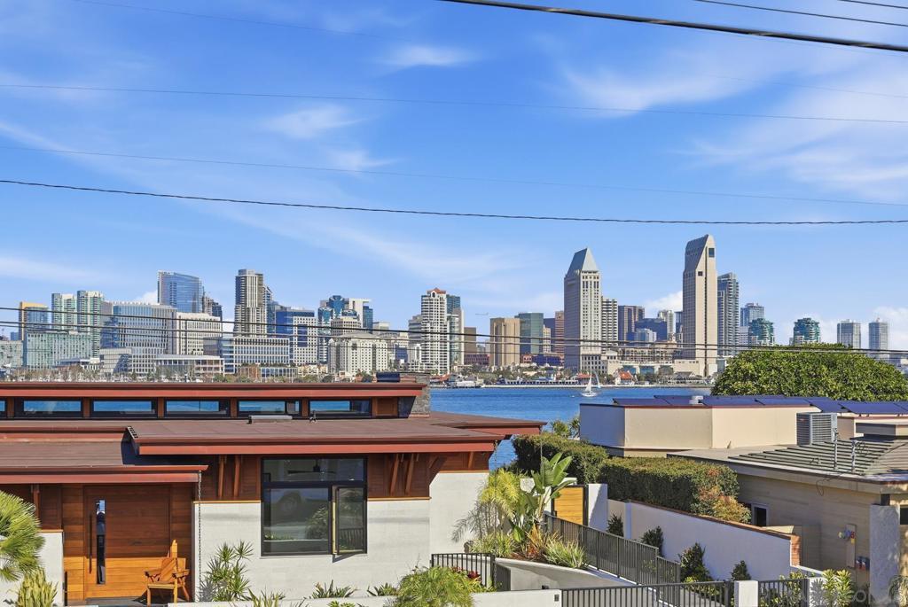 Amazing opportunity to own a distinguished residence on the highly desirable 1st st in Coronado. This home features a versatile floor plan, perfect for multi-generational living and entertaining. Upon entering the first floor, you'll find a spacious Guest quarters complete with a living/dining area, kitchenette, a generously sized bedroom with walk-in closet, full bath, and a serene private patio—ideal for visitors or extended family stays. The main living quarters is upstairs, where the expansive living, gourmet kitchen and dining room opens to a breathtaking 50-foot balcony that runs the full length of the home, offering unobstructed panoramic views of the bay and city skyline. The master suite is a tranquil retreat with its own bath, complemented by a well-appointed guest bedroom and bath. Additional features include back stairs and a second-floor balcony, enhancing the home’s accessibility and charm. This residence not only offers a remarkable living space but also a lifestyle enriched by its scenic surroundings and unique architectural design. Make this stunning property your home and enjoy the quintessential Coronado experience.