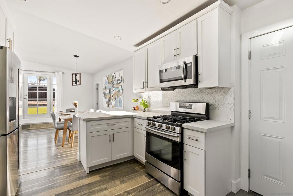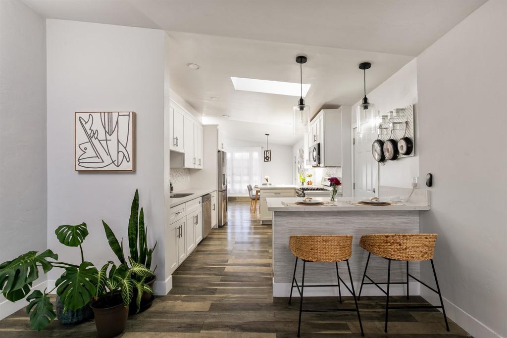Perched in a prime Bay Park setting, 1412 Frankfort welcomes you with an inviting living room framed by oversized windows and an elevated outlook across the surrounding greenery and neighborhood scenery. Vaulted ceilings and clerestory windows bring in beautiful natural light, creating an airy, open feel from the moment you walk in. The kitchen features white shaker cabinetry, quartz countertops, stainless steel appliances, recessed lighting, and a skylight, plus peninsula seating that flows seamlessly into the dining area. A standout bonus is the separate family room, giving you a second living space for movie nights, play space, or a cozy lounge, complete with a gas fireplace. The layout is equally thoughtful, featuring a private primary suite tucked away from the secondary bedrooms with a walk-in closet and an en-suite bath, with permitted addition and remodel work finaled in 2024. Additional property features include dual-pane windows, a new RainSoft water filtration system, and a new roof installed in 2024. Out back, the yard is the star: spacious, usable, and full of potential with room to entertain, relax, or explore future ADU possibilities subject to regulations and buyer verification. Enjoy SeaWorld fireworks and easy access to Tecolote Canyon trails, plus you are walking distance to neighborhood favorites like Seisel’s Deli, Bay Park Fish Company, and Bay Park Coffee. Minutes to Mission Bay and the coast, it is the kind of home that makes weekday routines feel lighter and weekends feel wide open.