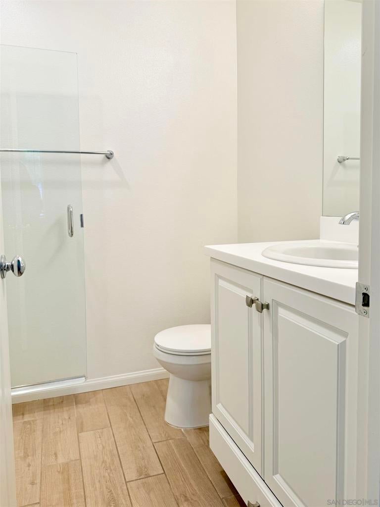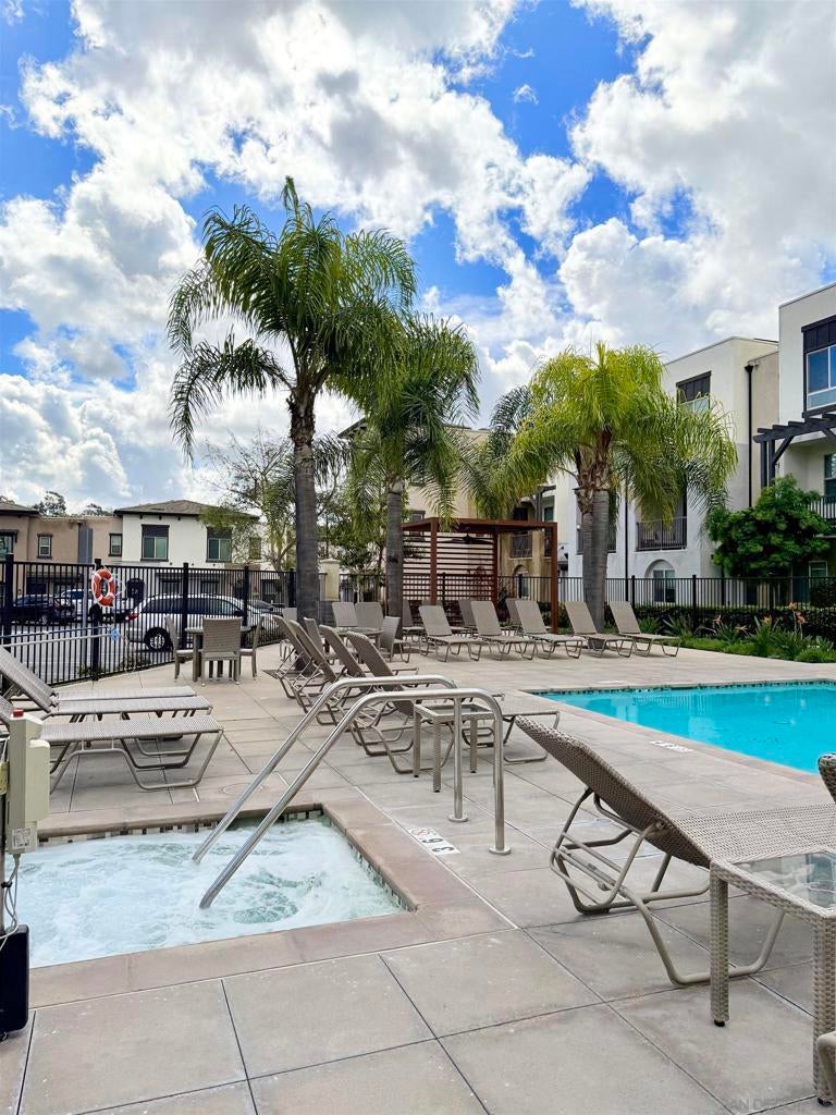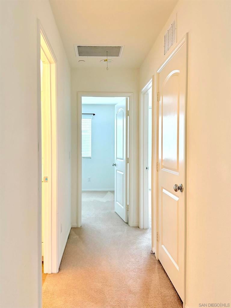 Welcome to this beautiful 4-bedroom, 3.5-bath townhome, ideally located near the Carlsbad border and just minutes from Bressi Ranch. Nestled within the gated Skyline community, this home offers modern living in a peaceful setting away from road noise. The versatile floor plan features a private bedroom and full bath on the entry level—perfect for guests, multi-generational living, or a home office. The bright and open main living area showcases luxury vinyl plank flooring, a spacious kitchen with a large center island, stainless steel appliances, abundant cabinetry, and a private balcony off the living room. A convenient half bath is also located on this level. Upstairs, the primary suite offers a walk-in closet, dual sinks, and a glass-enclosed shower. Two additional bedrooms, a full bath, and in-unit laundry complete the top floor. Additional highlights include: Two-car attached garage with storage racks Central A/C Energy-efficient construction Residents of Skyline enjoy resort-style amenities including a pool, spa, BBQ areas, playground, and greenbelts—all within the highly rated San Marcos Unified School District. Move-in ready and perfectly positioned for North County living—this is a home you won’t want to miss! Buyer and buyer’s agent to verify all information in MLS prior to close of escrow.