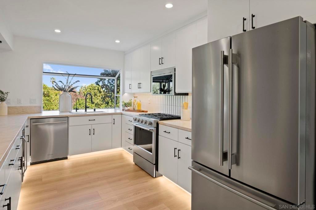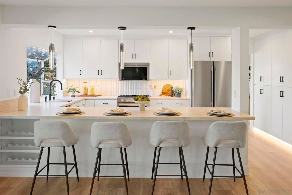 The “La Jolla of El Cajon” just delivered its crown jewel. Located in the coveted Horizon Hills neighborhood just east of the iconic Mt. Helix - where elevated views, estate-sized lots, and quiet luxury define the lifestyle. This fully renovated home offers 3,050 SQFT of thoughtfully curated design, sitting on an expansive ½-acre lot. From the moment you walk in, you’ll feel the difference - new LVP floors underfoot, fresh paint throughout, modern lighting, and beautifully reimagined bathrooms that feel straight out of a boutique hotel. At the heart of the home, the kitchen stuns with honed quartz countertops, under-cabinet lighting, new KitchenAid appliances, and effortless flow for both entertaining and everyday living. The newly finished Roman clay fireplace anchors the main living space with warmth and texture - a true statement piece. Step outside and you’ll find your own private retreat with a sparkling pool with new PebbleTec finish, mature fruit trees scattered across the grounds, and new coastal redwood decking perfect for sunset dinners and weekend gatherings. With its generous lot size, elevated setting, and top-to-bottom renovation, this home blends timeless California living with modern sophistication. If you’ve been waiting for turnkey luxury with space to breathe, this is it.