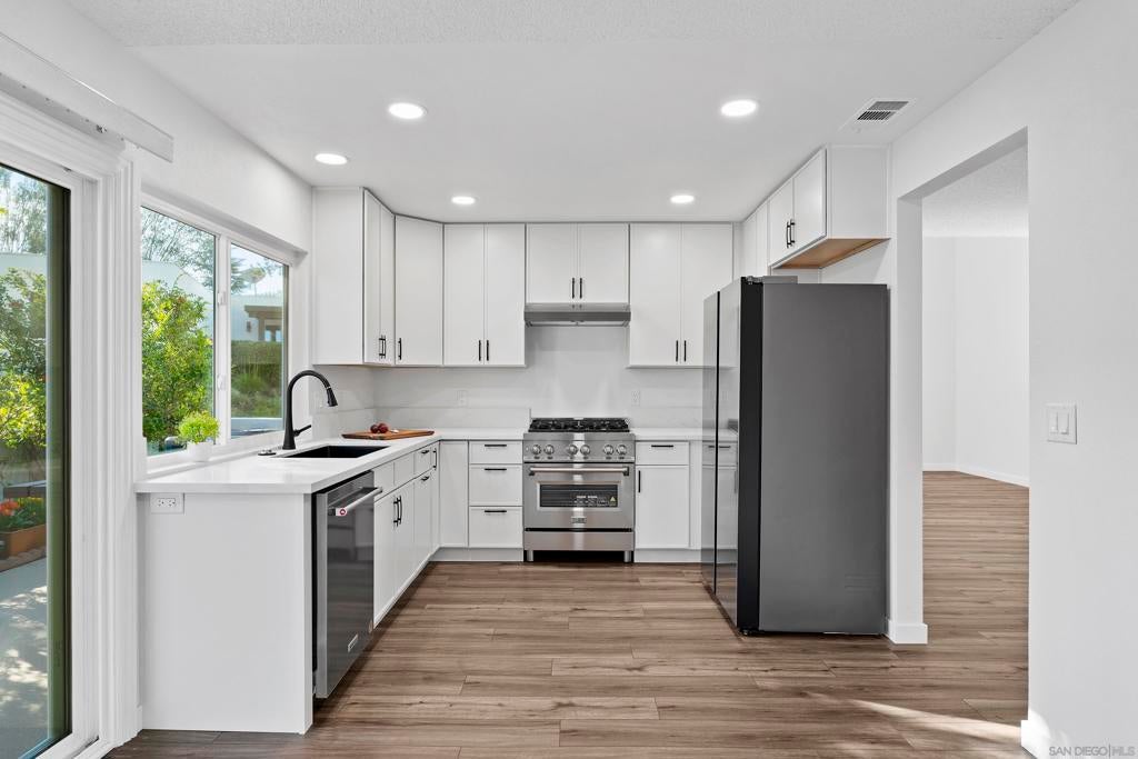 Discover a stunningly remodeled patio home in the vibrant “705 Haciendas” section of Seven Oaks, Rancho Bernardo. Enjoy a tight-knit 55+ community with a top-tier community center offering daily activities. Enter through a private courtyard and a beautifully refinished original front door to freshly painted rooms and clean, sleek ceilings. The modern kitchen features high-end appliances, sleek cabinets, quartz counters, and new recessed lighting. The expansive great room with vaulted ceilings includes a versatile dining area and a spacious living room with an 18-foot sliding patio doors opening to a private back patio with scenic views. Both bedrooms boast new windows and mirrored closet doors, while luxury vinyl plank flooring adds warmth throughout. Two spa-inspired bathrooms, one with an attached laundry room, elevate the experience. Don’t miss your chance to own this gem! ** Free one week accommodations in a Cabo San Lucas resort with successful closing by May 30, 2026 offered as a Seller Concession to help enable a smooth transition to your new home.