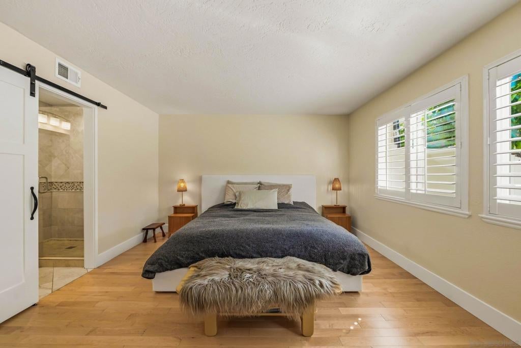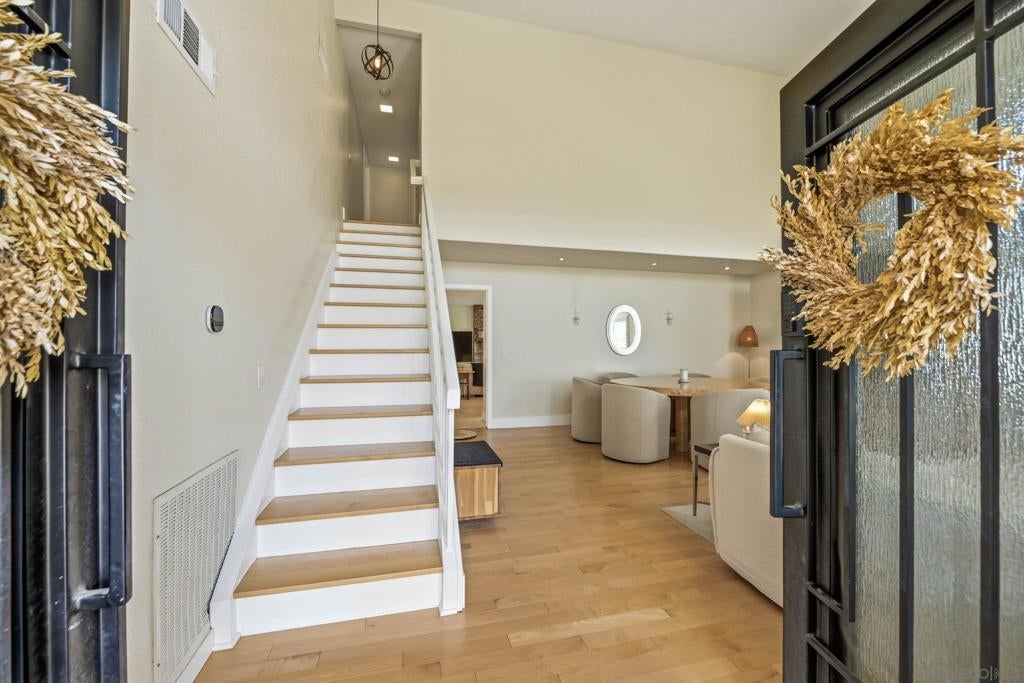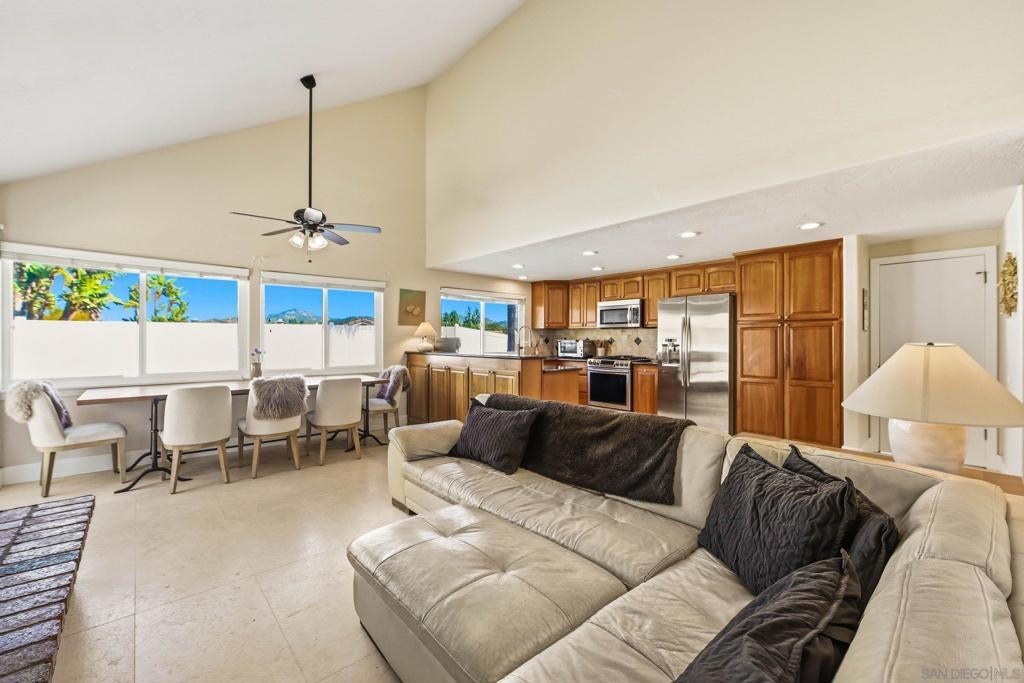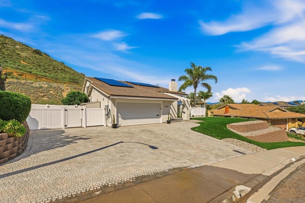 Welcome to 12388 Reata Ct, a privately situated and extensively renovated residence on a quiet cul-de-sac in Rancho Bernardo, San Diego. Offering 5 bedrooms, 3 bathrooms, and approximately 2,368 square feet, this home blends modern sophistication with effortless California living and timeless elegance. The property sits on a nearly half-acre lot, providing exceptional space and privacy. Wide-plank hardwood flooring, custom baseboards, and limestone tile elevate the interiors, while abundant natural light enhances the open, airy flow. The remodeled main-level bath features a sleek walk-in shower, and a finished expansion adjacent to the upstairs bedroom provides versatile space for a lounge, office, or media retreat. The garage boasts beautifully finished polished epoxy flooring and is thoughtfully equipped with a Tesla EV charging station. The backyard delivers a private resort experience with a redesigned pool, updated tile, spa extension, expanded deck, custom retaining walls, and a stylish gazebo perfect for entertaining or serene relaxation. Professionally installed turf in the front and rear yards pairs beautifully with a cobblestone driveway and walkway, creating exceptional curb appeal. Major upgrades include a new concrete tile roof, upgraded and relocated electrical panel, and an owned solar system designed to exceed projected energy use under Net Metering 2, combining luxury with efficiency and sustainability. Every detail has been thoughtfully curated to offer comfort, style, and turnkey living. Enjoy exclusive access to the prestigious Rancho Bernardo Swim & Tennis Club — a premier community amenity offering tennis, pickleball, swimming, fitness facilities, and vibrant social events. This private club enhances the Rancho Bernardo lifestyle with resort-style recreation, beautifully maintained grounds, and year-round activities for all ages. A true value-add to living in this sought-after neighborhood.