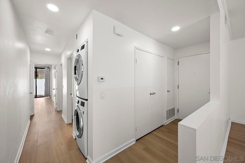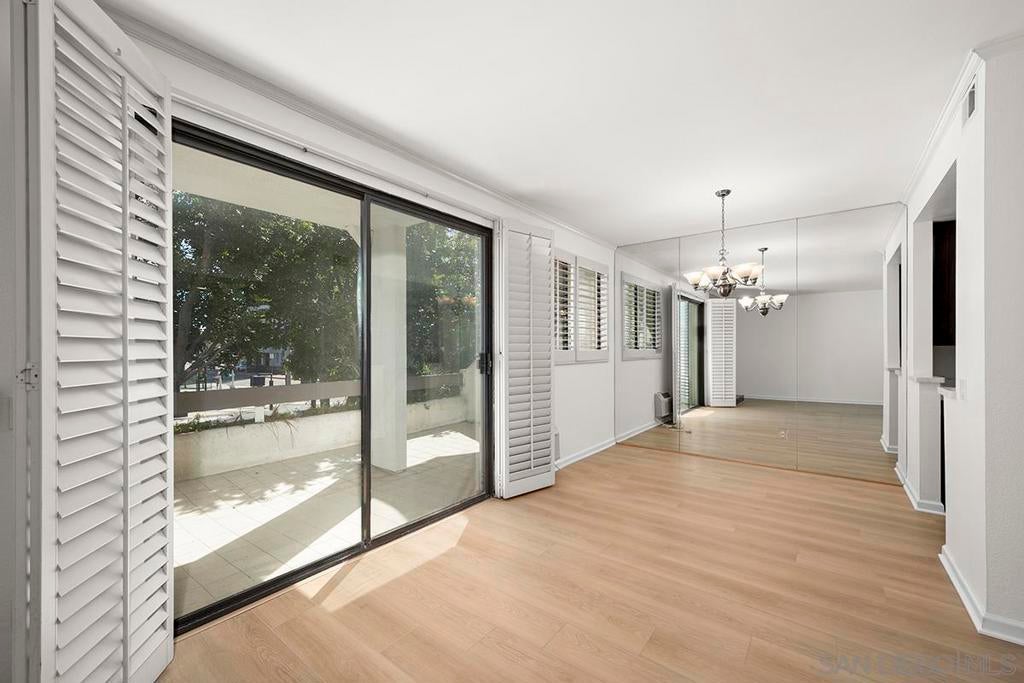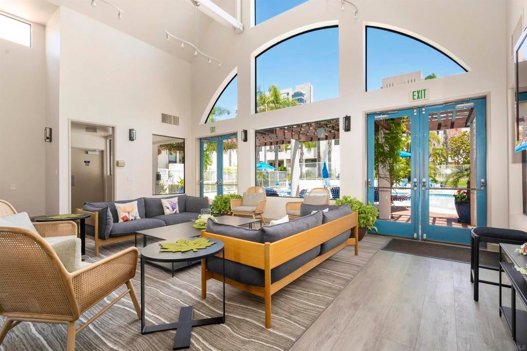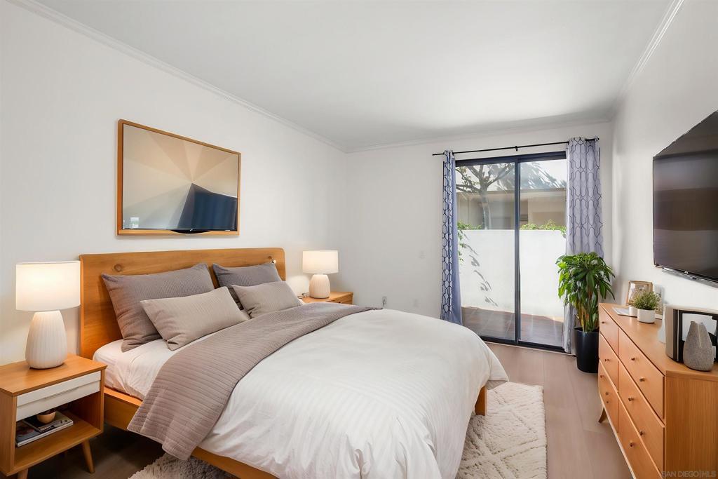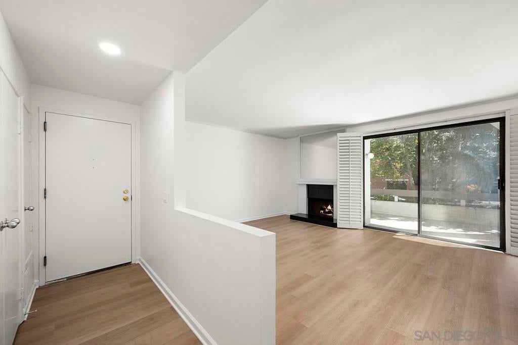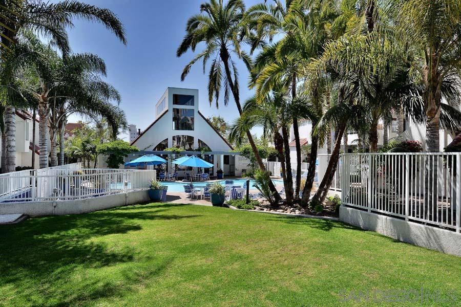 Welcome to this rare, single-level ground-floor residence with 2 bedrooms, 2 bathrooms AND 2 patios! With a bright and open layout and sunlight streaming in from every angle, it’s the kind of home that just feels good the moment you step inside. Enjoy the “Bentwood Tan” luxury vinyl plank flooring throughout, cozy ambient fireplace, and a “refreshed” kitchen with sleek quartz counter, top-notch Samsung appliances, refaced cabinetry and newer fixtures. The spacious primary suite offers dual closets and an ensuite bath with a step-in shower, while both bedrooms open directly to the patios—perfect for seamless indoor-outdoor living. Other features include LED lighting, a bonus storage closet on the patio, a secure parking space, and private storage cabinet. All this in Park Row, one of Downtown’s most charming low-rise communities, known for its lush landscaping, fantastic amenities, and unbeatable walkability. And yes—low HOA dues, too! There is no other development like Park Row in Downtown; beautiful garden-setting with sparkling fountains, a plethora of flowers, trees, real green grass and courtyards to boot. With no elevators, long corridors or hallways; rather “ease of access” walk-up style residences, it offers a serene escape for those seeking the charm of urban living without the high-rise hustle. Nestled beside the historic Pantoja Park, this tranquil community invites you to stroll to The Headquarters, Seaport Village, the Gaslamp Quarter, and the scenic waterfront, with Downtown San Diego's cultural highlights just steps away. Beautifully landscaped grounds enhance the peaceful ambiance, while amenities such as clubhouse, year-round heated pool, and spa create a relaxing retreat. Plentiful visitor parking is an added perk, and additional parking, storage options, bike storage, and an EV charging station are available through the HOA. Embrace the perfect balance of city convenience and peaceful living at Park Row—welcome home!