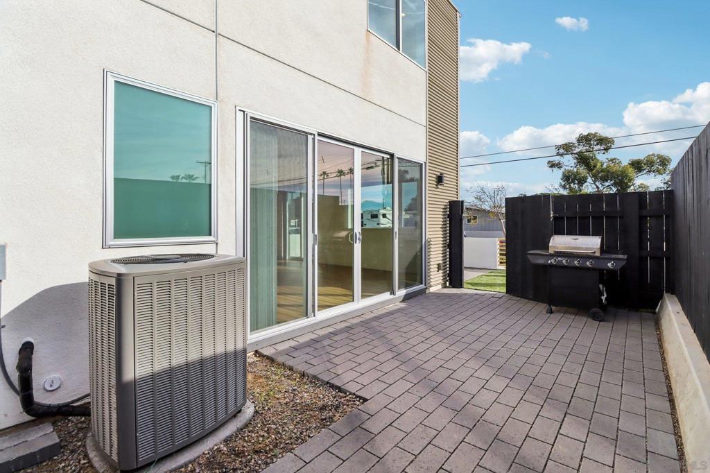 Welcome to Breezeline's premier front-corner residence with private driveway, abundant natural light, and seamless indoor-outdoor living. This thoughtfully designed home features 3 bedrooms, bonus room, 2.5 baths, and an open-concept main level with two sets of sliding glass doors that connect the front patio and a spacious private backyard. With a two-car garage and two-car driveway, the home provides ample off-street parking - a rare coastal convenience. The primary bedroom includes a walk-in closet, full-size private balcony, and beautiful ensuite while a Juliet balcony or oversized windows, and large mirrored closets can be found in the secondary bedrooms. The home showcases high-end finishes including Calacatta quartz countertops and island, cream wood-grain soft-close cabinetry, hexagonal tile backsplashes, 8-foot solid core doors, and durable SPC flooring. Smart features such as a Nest thermostat, Schlage front door lock, and hardwired internet connections bring modern convenience to everyday living. The home is also pre-wired and plumbed for solar, EV charging, and security systems, offering future-ready flexibility. Breezeline is an exclusive collection of 15 modern homes designed by De Bartolo & Rimanic Design Studio, and is located approximately 1.5 miles from the water in Imperial Beach. With distinctive aluminum and stucco architecture, low HOA dues, no Mello Roos, and VA approval, the community offers a rare blend of design, functionality, and easy access to the beach, bay, Coronado, I-5, and beyond. Unit 1 represents a rare opportunity to own the signature home in one of the area’s most thoughtfully designed new communities.