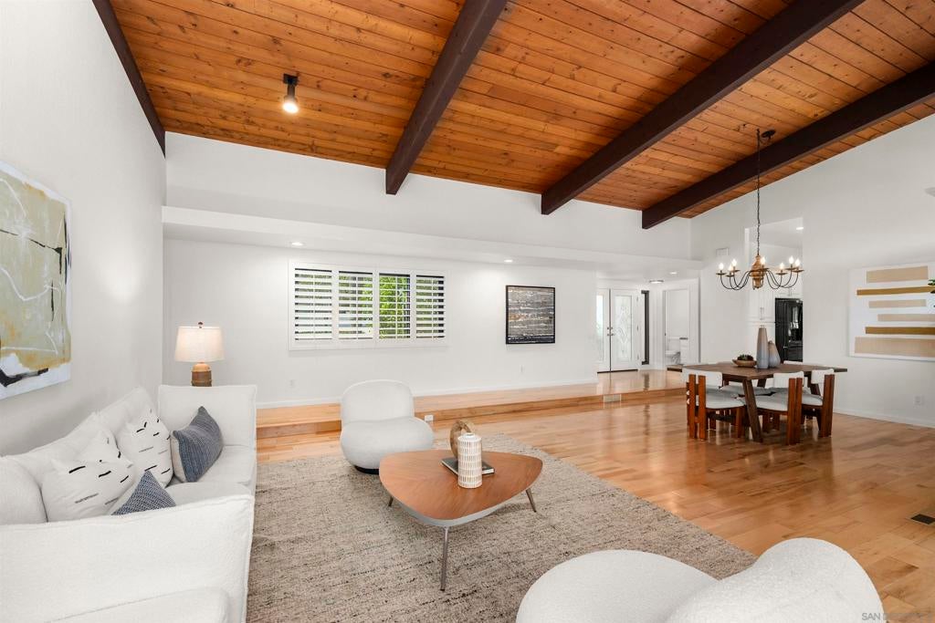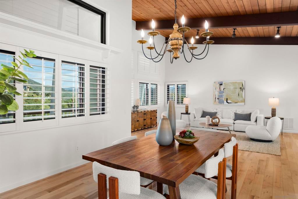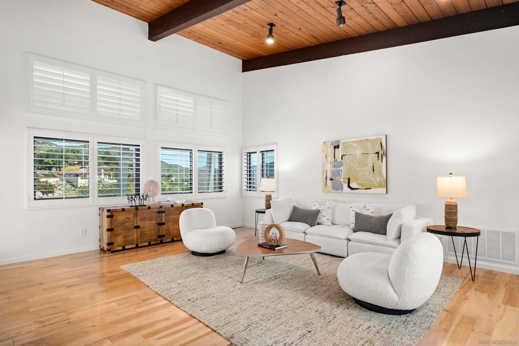 Pride of Ownership in Singing Hills! This one of a kind custom built single story estate features a stunning bright and airy open concept floor plan with 4 bedrooms, 2.5 baths, on a beautifully manicured 1.14 acre lot. This is not a flip! Home has been well cared for by the original owners and recently updated with premium dual pane windows/shutters, custom kitchen cabinets, quartz & granite countertops, modern electrical/plumbing fixtures, new flooring, and superior quality paint, both inside and out. Other highlights include a 24 panel solar system, vaulted wood beam ceilings, a separate home office (optional bedroom), laundry/utility rooms, refinished 4 car garage with smart door openers, expansive walk-in basement, and a large wrap-around balcony with panoramic mountain views. The outdoor grounds make for a gardener's paradise, with a variety of mature fruit trees, numerous garden beds, automatic drip system, rainwater tanks, and fresh wood mulch throughout. Property is located in one of the most desirable parts of El Cajon, with easy access to shopping, dining, schools, parks, hiking trails, lakes, sport facilities, golf courses, casinos, and more. Come see all that 752 Singing Vista Drive has to offer. This is an exceptional value.