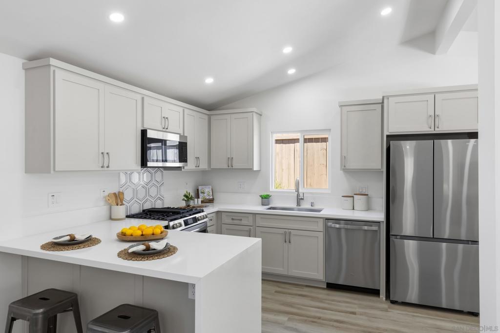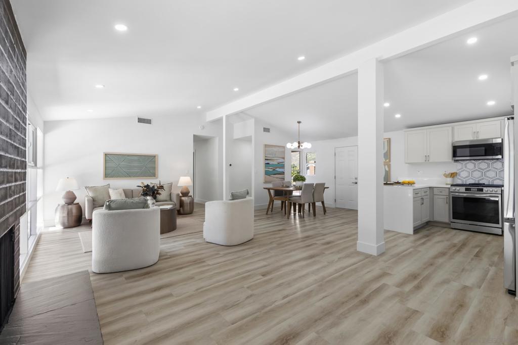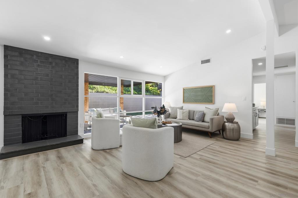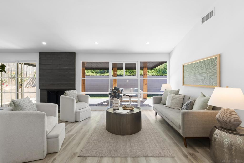 Sweeping views of Cowles Mountain, with vaulted ceilings and dramatic floor-to-ceiling windows filling the home with natural light and a true sense of openness. This beautifully upgraded San Carlos residence offers seamless indoor-outdoor living in one of the area’s most desirable neighborhoods. The refined kitchen features custom cabinetry, stainless steel appliances, and a statement peninsula ideal for casual dining and entertaining. Open sightlines connect the kitchen, dining, and living areas, creating an inviting yet elevated atmosphere. Additional built-in hallway cabinetry adds both style and functionality. The expansive private front courtyard feels like a retreat, complete with a built-in firepit and generous seating area—perfect for enjoying sunset views behind Cowles Mountain. An oversized driveway provides rare flexibility with space for multiple vehicles, RV parking, boats, or recreational toys. Dual-pane vinyl windows and full HVAC ensure year-round comfort. Close to top-rated schools, scenic hiking trails, parks, shopping, dining, and easy freeway access, this home delivers views, space, and the best of San Carlos living.