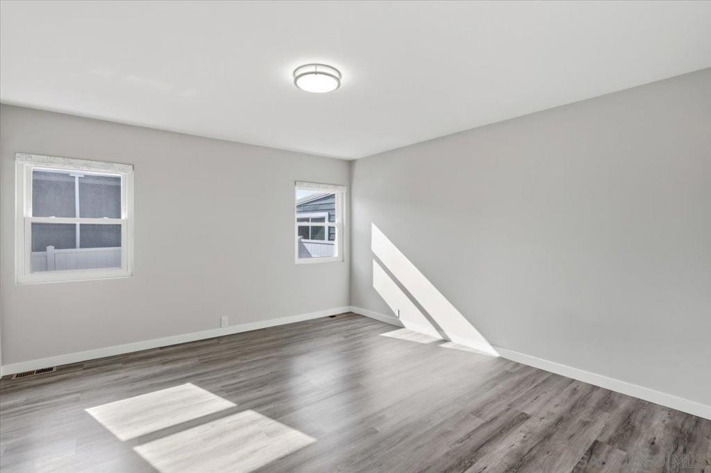 NEW PRICE!! This Modern Coastal Home blends contemporary comforts and aesthetics with a coastal, relaxed atmosphere. Located in Lakeshore Gardens 55+ Gated Community! Soothing gray colors, large open spaces, solid surface flooring throughout. Well-appointed kitchen, with ample work space and an expansive island, has newer appliances w/5 burner gas stove. Primary bath is thoughtfully modernized w/double vanity & a wall to wall shower! 24'X8' deck perfect for entertaining and spacious, pet friendly, fully fenced lower yard w/artificial turf. **No Property Taxes** Some photos have been Virtually Staged. Location is a 10 minute walk to South Carlsbad State Beach! LARGE strip mall offers EVERY POSSIBLE amenity from shopping to services all just a walk across the street! Lakeshore Gardens has a multitude of community areas that are upscale, assessible and beautiful!