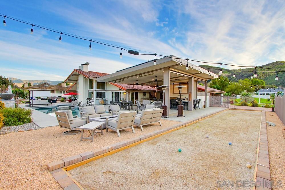 Beautifully remodeled open-concept home with soaring wood-beam ceilings and expansive chef’s kitchen. Fully owned solar system with three Franklin batteries provides energy efficiency and backup power during outages. Situated on nearly half an acre with exceptional privacy and only one neighboring property, offering scenic Pauma Valley hill views. Outdoor resort-style amenities include a 1,000 sq ft pavilion with heaters, misting system, bar and TV, dramatic fire/water feature, oversized fire table, swimming pool with lounging shelf, drought-tolerant landscaping with fountains, bocce court, four raised garden beds, and mature fruit trees. Remodeled bathrooms complete this turnkey indoor-outdoor retreat. This beautifully remodeled, open-concept home offers the perfect blend of luxury, comfort, and indoor-outdoor living. The expansive chef’s kitchen anchors the heart of the home, flowing seamlessly into bright living spaces accented by soaring wood-beam ceilings that add warmth and architectural charm. The home features a fully owned solar system paired with three Franklin batteries, providing exceptional energy efficiency and the ability to power the home during outages—delivering peace of mind, lower utility costs, and true energy independence. Step outside to your private resort-style retreat on nearly half an acre, with only one neighboring property and sweeping views of the Pauma Valley hills. The stunning 1,000-square-foot outdoor pavilion is built for entertaining, featuring built-in heaters, a misting system, full bar, and mounted television—ideal for hosting gatherings year-round. A dramatic fire-and-water feature sets the scene alongside a huge fire table, while the large swimming pool with lounging shelf invites you to relax and unwind. The thoughtfully designed, drought-tolerant landscaping is complemented by tranquil water fountains, mature fruit trees, and a peaceful garden setting. Enjoy friendly competition on the bocce court, cultivate your green thumb in four raised garden beds, and retreat indoors to beautifully remodeled bathrooms that add a touch of spa-like comfort. This rare, private property offers the best of both worlds—peaceful seclusion with resort-style amenities and modern, self-sustaining conveniences—perfect for entertaining, relaxing, and embracing the best of Southern California living. ________________________________________