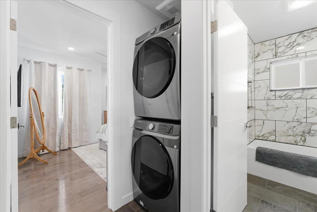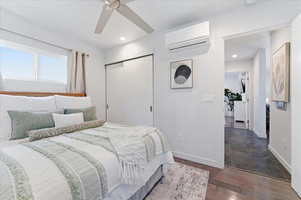 Spectacular panoramic bay views from this fully furnished La Jolla beauty! Perched on the hill above Kate Sessions park, this ultramodern and chic, 2 BR / 1 BA retreat has everything you want. Quartz countertops & high gloss European style cabinetry adorn the large kitchen which is open to the living space and oversized sliding doors. Plenty of storage w/ stainless steel appliances, dishwasher & gas range. In unit washer and dryer, 3 zone mini-split for heat & AC, backyard deck, bar & built in BBQ. All utilities included. Short term rental OK (1 month minimum). Did I mention the views?