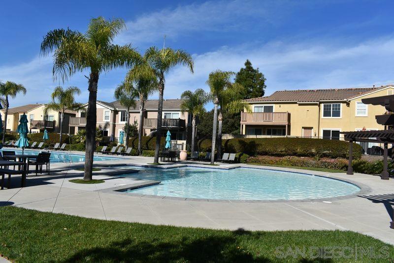 Beautiful Mediterranean-style townhouse for sale in a gated East Lake community in Chula Vista. The home offers 3 bedrooms, 2.5 full bath, approximately 2,230 square feet of living space and is a three-story home that includes a bonus loft and multiple private outdoor areas. The architecture features soft curves, arched details, and Mediterranean-inspired elements, giving it a sense of warmth, character, and timelessness. High ceilings and graceful arched doorways create a sense of openness while maintaining defined living spa. The main living area is bright and welcoming. It features large windows for natural light, a fireplace that serves as a focal point, and built-in shelving. The kitchen seamlessly connects to the living space and includes modern, well-crafted cabinetry with ample storage and generous counter space. Just off the living area is a private patio that includes a hot tub. The main level has a convenient half bath for guests and a full bathroom. Second level includes two additional full bathrooms with dual vanities, dedicated washer and dryer room with space storage, and organization. A built-in desk area between the bedrooms serves as a functional workspace. Primary suite is spacious and includes two large walk-in closets and access to a private balcony. The suite bathroom features a soaking tub, a separate shower, and dual sinks. Third floor has a versatile bonus loft space that can be used as a media room, guest room, home office, gym, or creative space and private balcony with beautiful views of the Otay. Enjoy the community pool nearby shopping, dining.