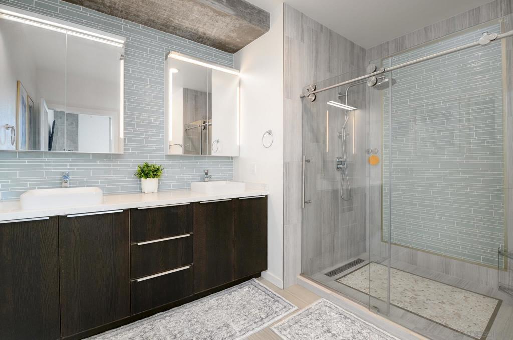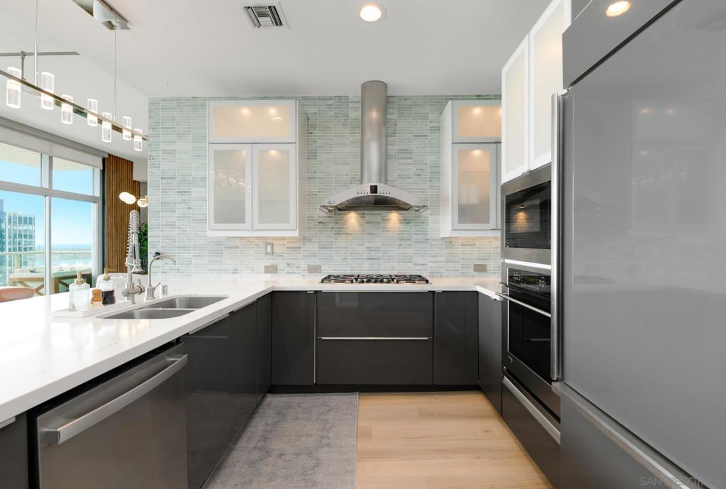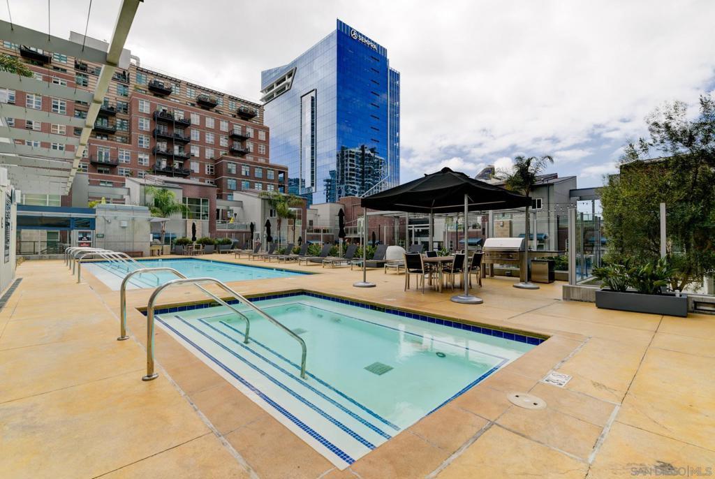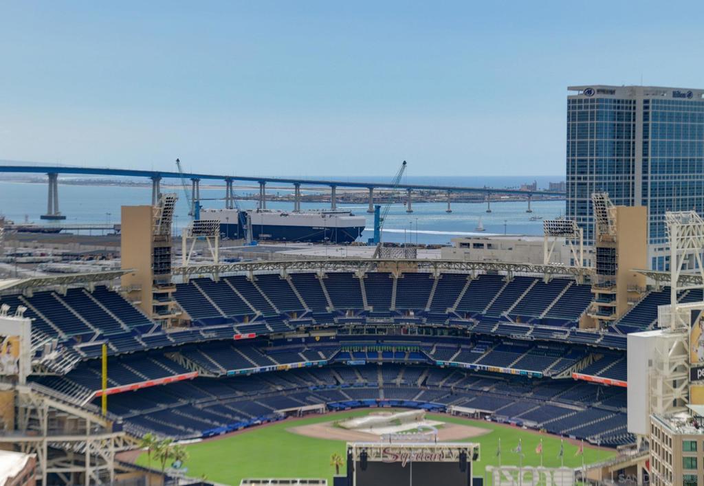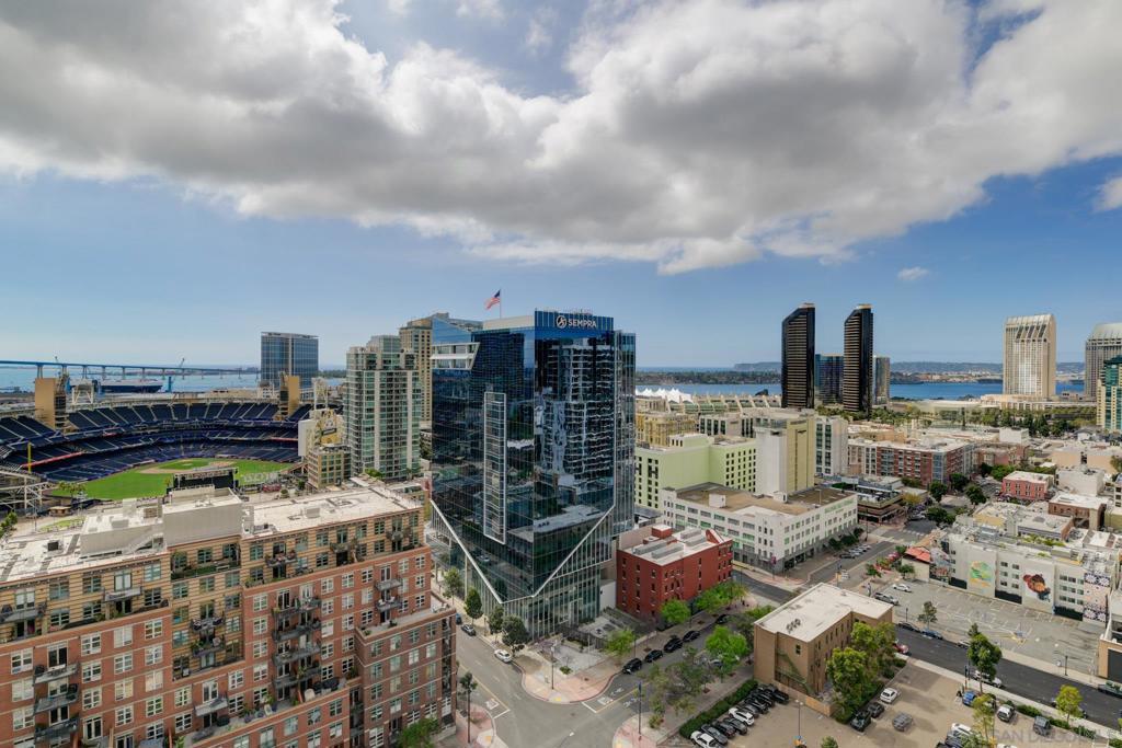 Experience extraordinary panoramic views from this exceptional residence, offering sweeping vistas of Petco Park, Coronado, the Bay, Point Loma and Ocean placing San Diego’s iconic skyline at center stage. Two private balconies provide the perfect setting to enjoy sunrise coffee or evening sunsets framed by the city lights or enjoy watching baseball at Petco Park and live shows at Gallagher Square. Designer upgrades incl. brand new $30K luxury laminate wide plank floors, motorized shades, renovated bathrooms & a beautifully renovated Chef's kitchen with sleek cabinetry, stainless steel appliances & a contemporary backsplash. New microwave & dishwasher. The open-concept design seamlessly connects the living, dining & kitchen spaces, for entertaining & everyday living with option to easily convert dining space into a second bedroom where closet has been thoughtfully installed already. Primary suite with balcony access, blackout motorized shades & spacious walk-in closet. Two secured parking spaces & storage unit add convenience and peace of mind, while resort-style amenities—including a lap pool, spa, fitness center, full kitchen, fire pits and pizza oven. Multiple lounge areas and four dedicated barbecue stations. Ideally located with immediate access to the vibrant Gaslamp Quarter, Little Italy dining scene, The Rady Shell waterfront concert & event venue and this residence also places baseball enthusiasts moments from the action at Petco Park. A rare opportunity to own a view-driven urban retreat combining modern sophistication with premier lifestyle access. Rising 33 stories above the vibrant East Village, The Mark defines sophisticated urban living in downtown San Diego. Surrounded by acclaimed dining, cafés, entertainment venues, shopping, and major sporting events, residents enjoy an unmatched walkable lifestyle just minutes from the bay. The building’s striking glass-and-metal architecture is complemented by 11 distinctive brick townhomes, creating a bold yet refined presence. There is an expansive outdoor retreat featuring a lap pool and spa, fully furnished terrace with outdoor kitchen, fire pits, pizza oven, multiple lounge areas, four barbecue stations, and outdoor showers with private restrooms. Additional amenities include a state of the art fitness center and conference room with Wi-Fi. It It has a private loading dock, and service elevator ensuring convenience for extra large pieces of furniture. All offered with remarkably low HOA fees—an exceptional opportunity for luxury downtown living.