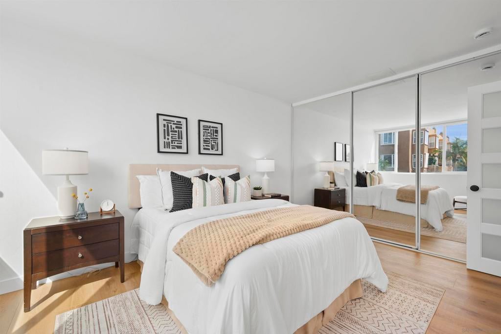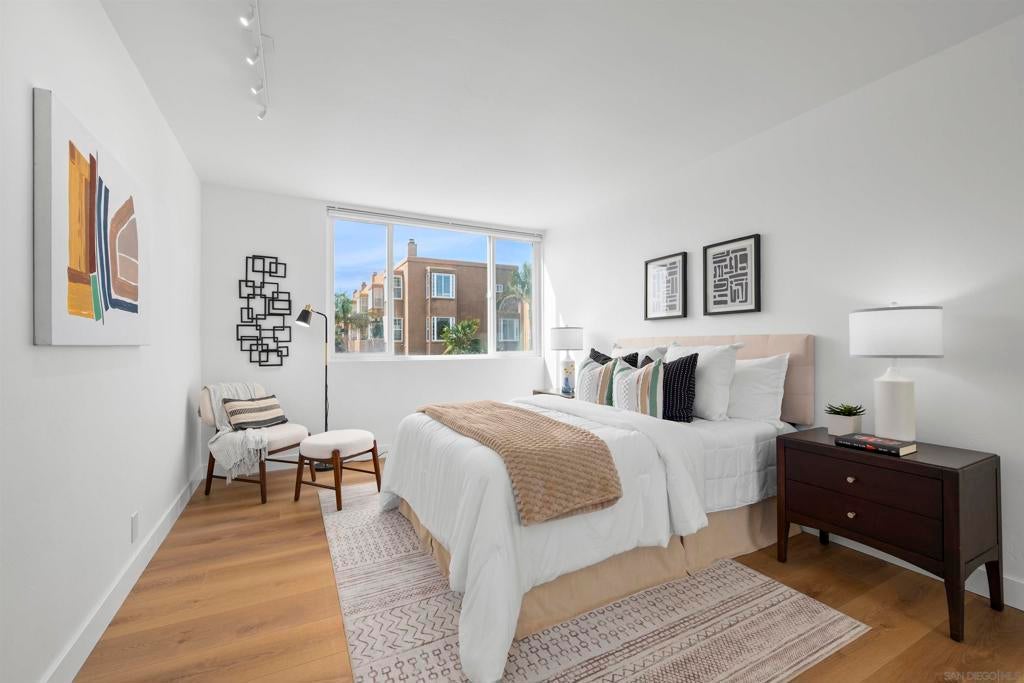 In North Park, with Hillcrest just moments away, this boutique-style building is tucked away on a quiet, low-traffic street. This bright, sunlit west-facing unit features a private balcony, perfect for taking in the views. Enjoy walkable access to cafés, restaurants, farmers markets, grocery stores, and everyday shopping in both neighborhoods, along with close proximity to Balboa Park, the San Diego Zoo, and Morley Field. Beautifully renovated, the home features light oak wood-look waterproof laminate flooring, fresh paint, updated light fixtures throughout, and an upgraded kitchen and bath. The kitchen includes a new backsplash, refrigerator, sink, faucet, updated plumbing, and new cabinet hardware. The bathroom has been fully renovated with all-new finishes. Custom built-ins provide exceptional storage, including hallway shelving and a newly added closet with built-in shelving in the primary bedroom. Community amenities include a pool, sauna, rooftop BBQ lounge with views, bike room. Beautifully renovated throughout with light-oak wood-look waterproof laminate flooring, fresh interior paint, and updated light fixtures. Located in a boutique-style building, this home offers a thoughtfully designed layout with custom built-ins for exceptional storage, including hallway shelving and a newly added closet with built-in shelving in the primary bedroom. Both the kitchen and bath were upgraded with updated plumbing and all-new fixtures. Kitchen upgrades include a new backsplash, refrigerator, sink, faucet, and cabinet hardware. The bathroom has been fully renovated with an all-new tub/shower, vanity, toilet, fixtures, and finishes. Includes one assigned parking space with easy in-building access. Window treatments on all windows. Community laundry facility available for residents.