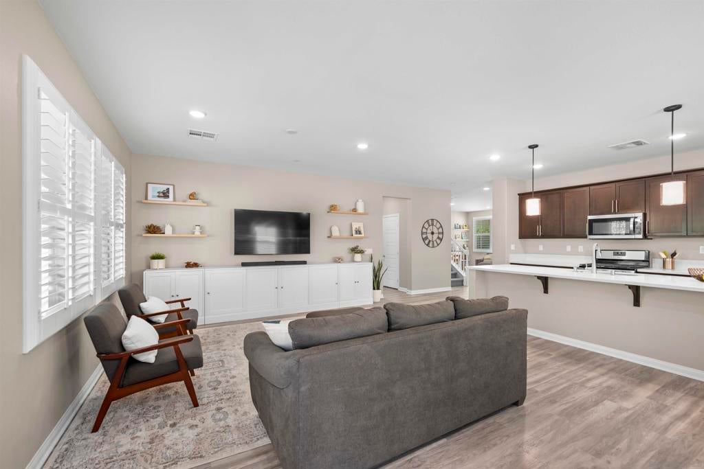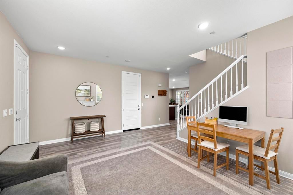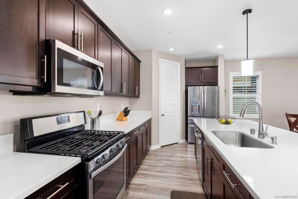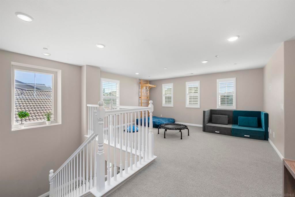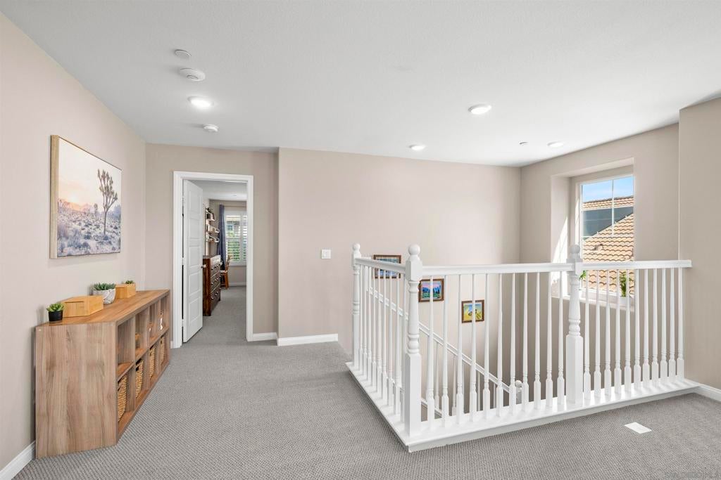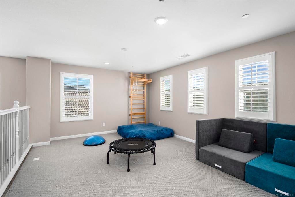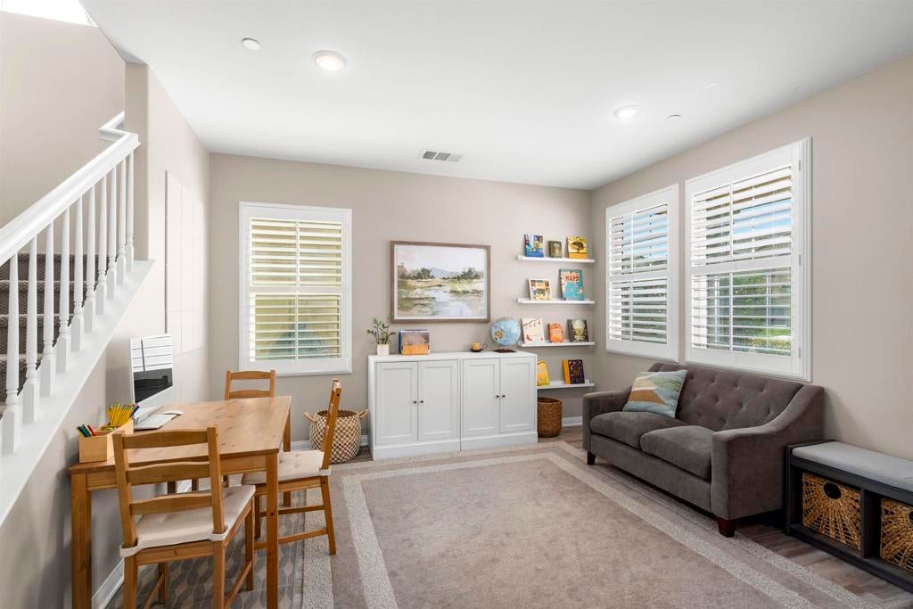 This beautifully appointed 4-bedroom, 3.5-bath, 2-story home offers the perfect blend of modern comfort and outdoor luxury. Tucked away on a quiet cul-de-sac, it provides a serene escape with premier access to nature. The main level boasts a great room, a 2nd primary bedroom, and a living/study area, while the upper level serves as a private retreat for the family. The yard is designed for gatherings, offering ample space for outdoor dining and poolside play. Easy care yard. Play structure can convey. Paid solar too! Enjoy the ultimate Southern California lifestyle with the Walker Preserve Trail within walking distance. This 1.3-mile flat, well-maintained path is perfect for walking, jogging, or cycling along the San Diego River. Summer concerts in the park and so much more that Santee has to offer. LVP flooring. Smart irrigation system. Patio features ceiling fans. Portable pool safety fence. Shed in the side yard conveys. Extra room measurements - loft area. Great Community - Community Easter Egg Hunt, Block Party, and others throughout the year!