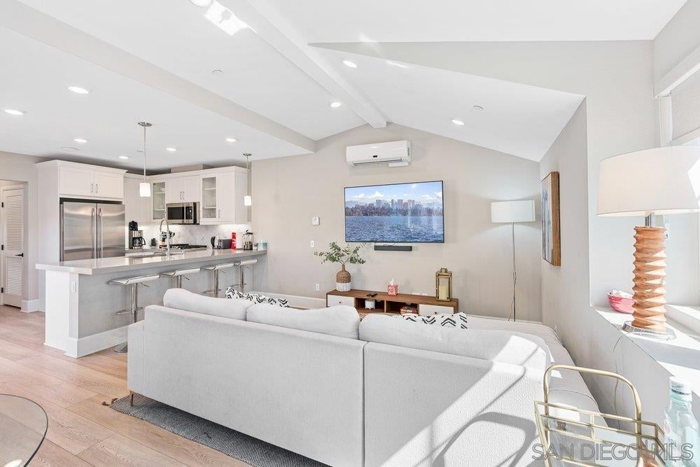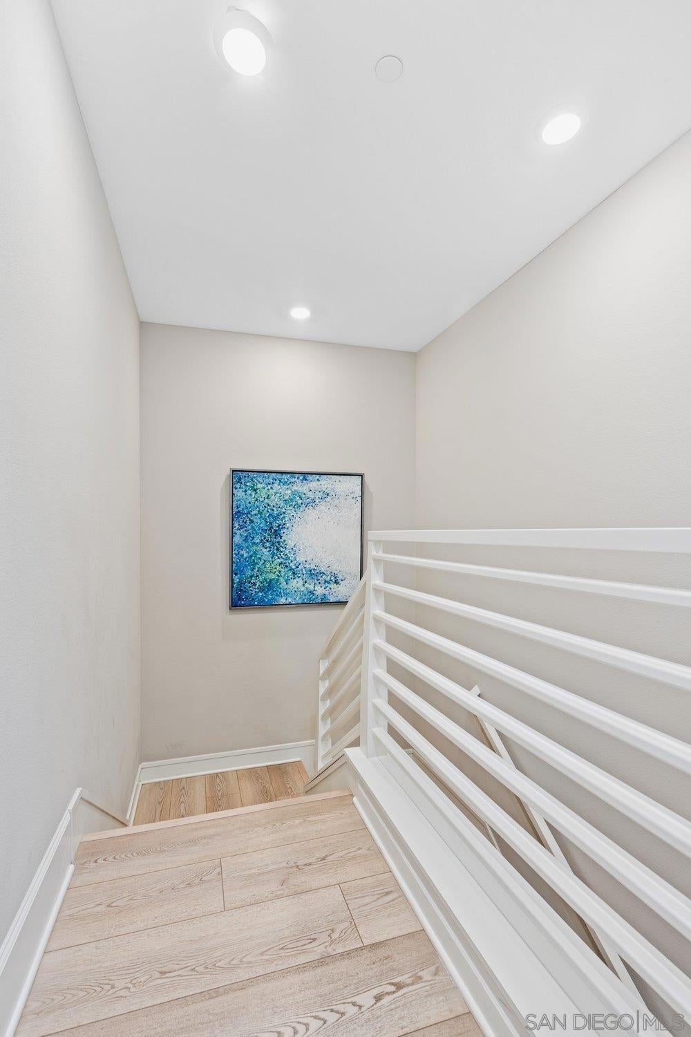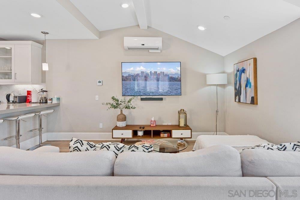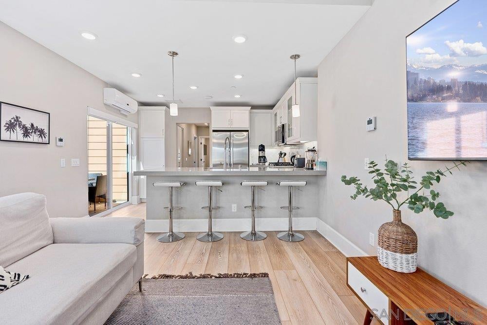 Make every day feel like a vacation! Located just steps to the sand between the peaceful bay and the invigorating ocean is this newer luxury townhome in the heart of Mission Beach. Built in 2021, this newer 3 bedroom, 2 bath coastal retreat is light, bright, and offers the best in open concept living. This home has been sparingly used and shows like a model. You’ll love the modern finishes throughout, including wide-plank LVP flooring, quartz countertops and white shaker cabinetry. The attached 2 car tandem garage provides convenient parking and room for all of your beach gear. Full size washer & dryer is located on main level. A spacious patio located right off the kitchen is ideal for outdoor BBQ's and a private covered balcony off the primary suite completes all of your must-have boxes! Owned solar too! This luxury townhome at the beach offers something for everyone. Perfect as a full-time residence or a lock-it & leave-it second home. Enter through the front door and head upstairs or to your direct access garage. On your way up to the main level, there is a private secondary bedroom perfect for guests or as a home office. The main level up top features an open concept living space as well as 2 bedrooms and 2 full bathrooms off the rear of the home. The living space is open to the kitchen, dining area and spacious patio off of the glass slider. The kitchen features breakfast bar, stainless steel appliances, quartz counters and white shaker cabinets. Down the hall from the living area is a full bathroom and a laundry closet with full size stacked washer & dryer. Also down the hall are 2 more bedrooms. The primary bedroom features en suite bathroom with dual sink vanity, walk-in closet, and a covered balcony. Bayside Cove sits perfectly between Mission Beach and Mission Bay. You are a short walk to the boardwalk, Belmont Park, and an abundance of local dining and shops. Enjoy paddle-boarding, kayaking, sailing, or simply sitting by the water at sunset on the quiet bayside. Or take a quick stroll over to the beachside where things are more energetic and you can play in the surf. This is a must see property!