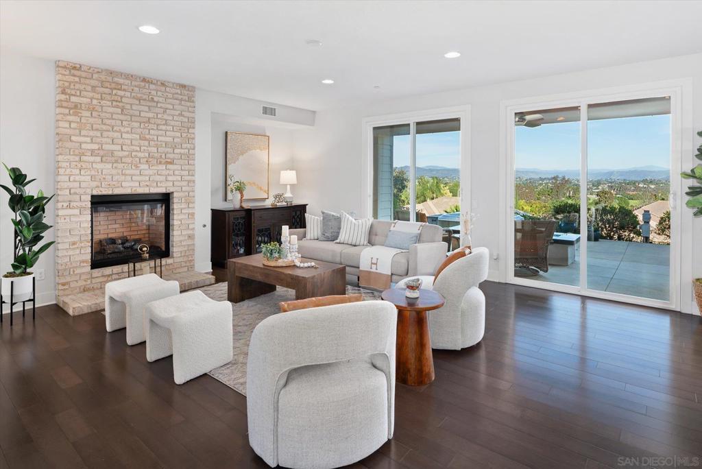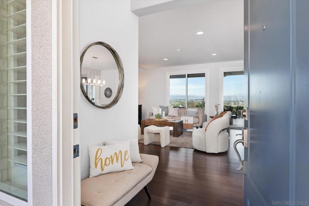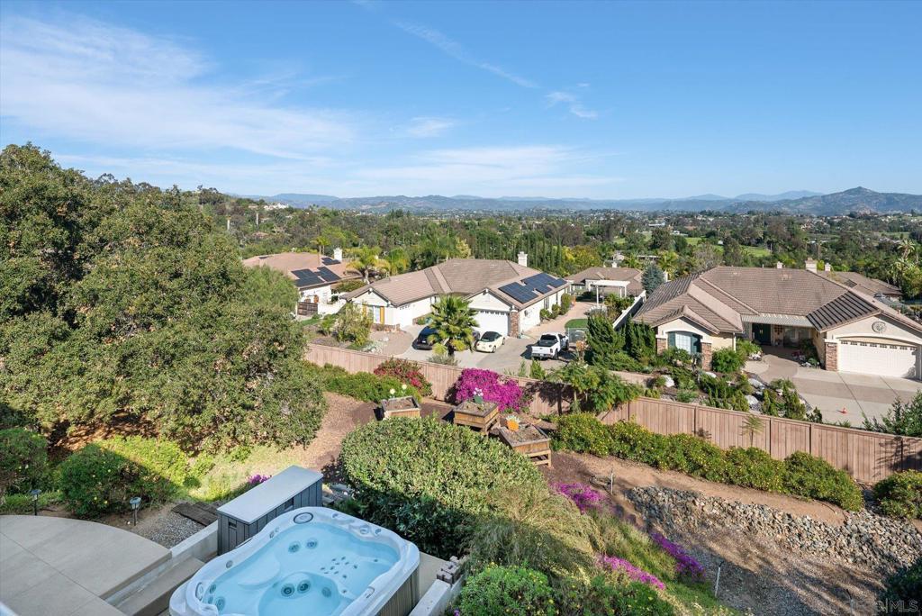 Range Price $1,750,000 - $1,895,000. Enjoy BREATHTAKING elevated panoramic mountain VIEWS from both floors of this Exceptional Custom Estate. The cul-de-sac location affords privacy & serenity. A 1st floor primary bedroom suite & office is featured in this open floorplan. The gourmet kitchen boasts Caesarstone counters & an oversized granite prep island w/ bar seating. Soaring ceilings & windows add natural light. A sizeable upstairs recreation room has 2 view balconies. Owned solar, RV parking. No HOA/Mello-Roos. Expansive sliders take advantage of stunning views & gorgeous sunrises while allowing indoor-outdoor entertainment. A Chef’s kitchen, open to DR/LR, boasts Ceasarstone counters adorned by full mosaic tile backsplash & stainless appliances. A walk-in pantry w/shelves maximizes space. The prep island is lengthy w/plentiful storage & bar seating. The 1st floor bedroom suite has views, seclusion & a cozy gas fireplace. It is ensuite w/ 2 sink stations, shower w/ bench & Kohler soaking tub w/ spray wand. A huge walk-in-closet has organizers. The upper bedrooms flow to a huge recreation room w/ 2 view balconies, trey ceilings & inset media wall. Retreat to soak in the hot tub under the stars. Enjoy gathering around the linear firepit. The yard has 3 raised planters gardeners will love. Energy Efficient:19 owned solar panels, fire sprinklers, 4-zoned HVAC, alarm system. **Built in 2014 by Galey Homes, it is only 1 of 2 built after the neighborhood & not subject to HOA.** RV parking w/ a long-split driveway=many cars. A spacious 3 car garage is drywall finished/epoxy floored. Highly sought after SW Escondido neighborhood.