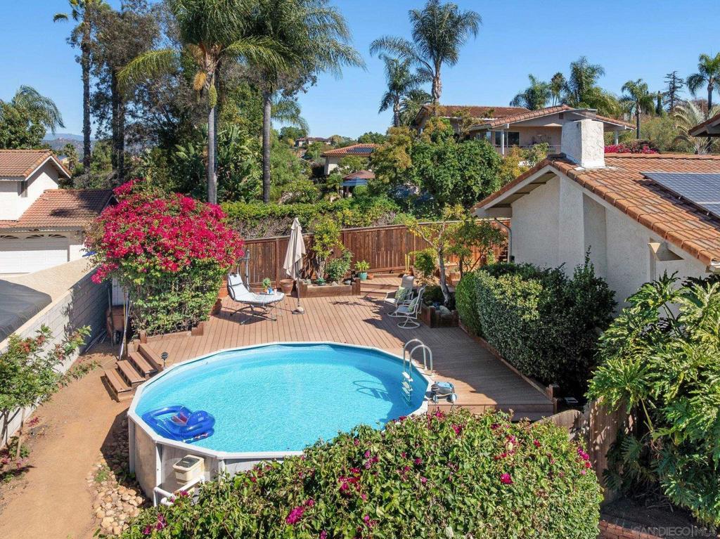 SELLER OFFERING FINANCE ASSISTANCE! Gorgeous View home is primely located on a private hillside cul-de-sac. Enjoy amazing sunsets from your living room or deck. Serenity surrounds you with lush gardens & several fruit trees on a generous lot. Energy Efficient w/ 27 OWNED SOLAR panels & EV charger. The expanded quartz kitchen & baths along w/ travertine & hardwood flooring will impress. Other features: above ground pool, deck & pergola, abundant parking. Your own PRIVATE PARADISE! No HOA or Mello-Roos Tax. Fruit trees galore at this Peaceful Retreat providing orange, lemon, lime, grapefruit, persimmon & avocado. The lush flora attracts butterflies & hummingbirds! The GOURMET KITCHEN, renovated in 2018, has quartz counters, designer fully-tiled backsplash, stainless appliances & multiple pull-outs. A prep/storage island w/ 2nd sink & bar seating is illuminated by dual pendants. The 5-burner gas cooktop is accented by a stately vent hood. The Bosch dishwasher is super quiet. Natural light flows through the lovely bay window & skylight. A custom wine cabinet holds 144 bottles. The fireplace was enhanced w/ an artificial log set. The rich hardwood staircase leads to a spacious primary retreat w/ ensuite bath & walk-in closet. The step-in shower boasts a bench seat & inset shelf. A renovated 2nd bath serves the other bedrooms. Lounge by the pool, BBQ, & enjoy gatherings. Large driveway=guest parking. The drywall lined garage w/ epoxy floor has many racks, cupboards, shelves & tool bench, offering storage options.