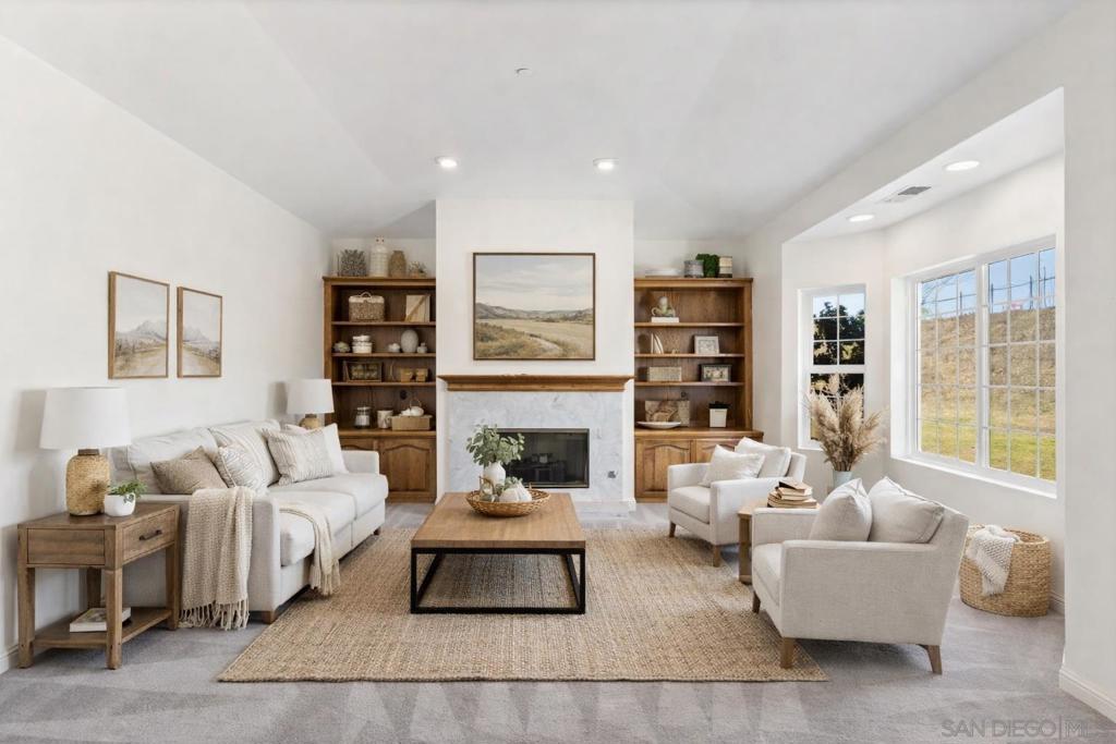 Set on 2.28 acres in the scenic hills of Fallbrook, this private gated single-story estate offers 3,230 square feet with four bedrooms and three and one-half bathrooms, capturing sweeping valley and hillside views while delivering the space and serenity that define Fallbrook living. A private gated driveway and fully fenced grounds create a welcoming sense of arrival while enhancing privacy and security. A grand covered entry with custom double wood doors opens to light-filled living spaces featuring rich built-in oak cabinetry, elegant architectural details, and two fireplaces that anchor the home with warmth and character. Expansive living areas and large windows frame the surrounding landscape, creating an inviting environment for both everyday living and entertaining. The kitchen is designed for gathering, offering granite countertops, a center island, double ovens, and a bright breakfast area overlooking the picturesque setting. The spacious primary retreat features tray ceilings and direct access to the patio, while the primary bath includes dual vanities, a soaking tub, and a separate shower beside large windows that bring in natural light and garden views. Outdoors, a view terrace and pergola-covered patio provide the perfect setting for entertaining while overlooking the rolling Fallbrook hills. A four-car garage and expansive motor court complete this private Fallbrook estate, blending scenic beauty, privacy, and timeless comfort in one of Fallbrook’s most peaceful hillside settings.