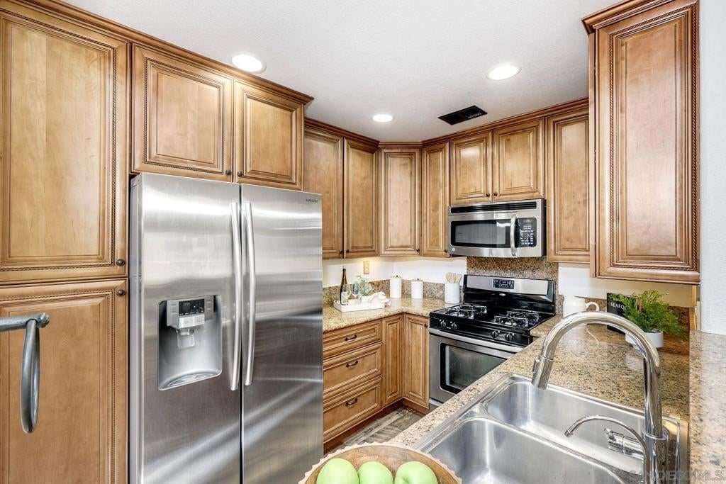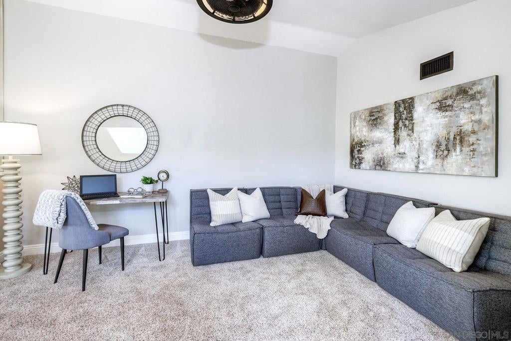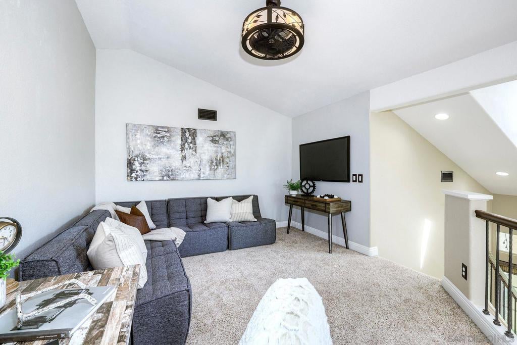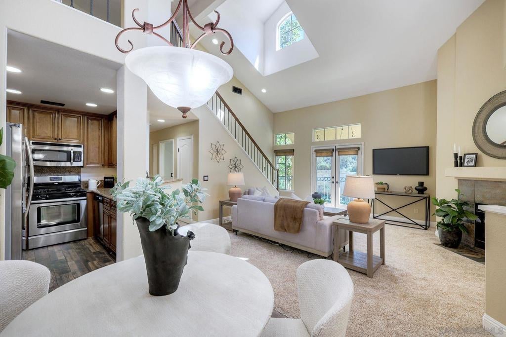Light, bright, and flexible living in the gated community of Provencal! This inviting 2 bedroom, 2 bathroom townhome with a spacious loft offers an open floorplan filled with natural light and dramatic vaulted ceilings. The comfortable living room features a cozy gas fireplace, creating a warm and welcoming space to relax or entertain. The updated kitchen is equipped with granite countertops, stainless steel appliances, and a breakfast bar, seamlessly connecting to the main living area. A versatile loft provides the perfect space for a home office, guest area, or can easily be converted into a third bedroom. Enjoy outdoor living with two private balconies, one off the living room and another from the primary retreat. Ideally located just minutes from shopping, dining, golf courses, and convenient freeway access in the desirable Carmel Mountain Ranch area of Rancho Bernardo.