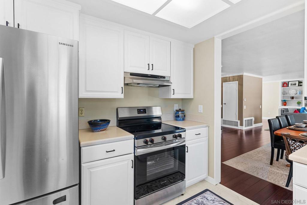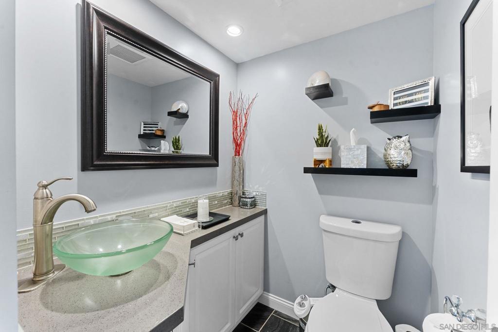 Beautifully refreshed home situated on a quiet cul-de-sac in Poway, offering thoughtful upgrades, comfortable living spaces, and a spacious backyard. Recent improvements include freshly painted interior and exterior, new carpeting upstairs, refinished kitchen cabinetry, and a remodeled bathroom featuring a modern vessel sink and updated fixtures. Inside, the home offers bright and inviting living spaces with a functional layout that flows easily between the kitchen, dining, and living areas. The kitchen features refinished white cabinetry, stainless steel appliances, and a skylight that brings in natural light while maintaining excellent everyday functionality. Upstairs, the new carpeting adds comfort to the bedroom spaces, while updated stair finishes and railings provide a clean, modern touch. The remodeled bathroom offers a stylish vanity with glass vessel sink, contemporary lighting, and updated finishes. Outside, the property features a large, usable backyard with plenty of room for outdoor dining, entertaining, gardening, or future possibilities such as a pool or expanded outdoor living space. Located in a desirable Poway neighborhood with scenic surroundings and nearby parks, this home presents a move-in-ready opportunity with meaningful upgrades and great outdoor space.