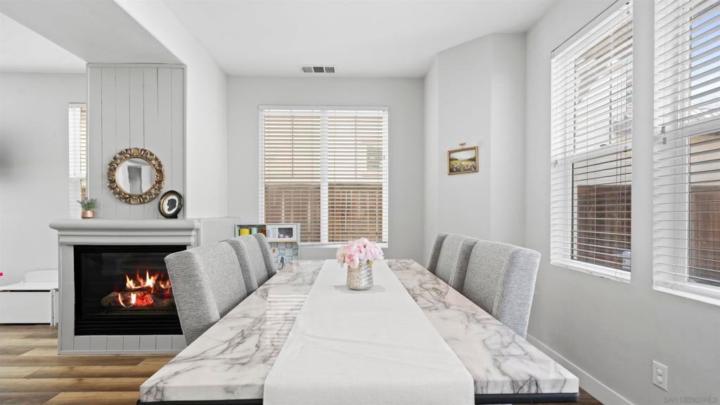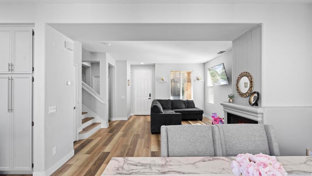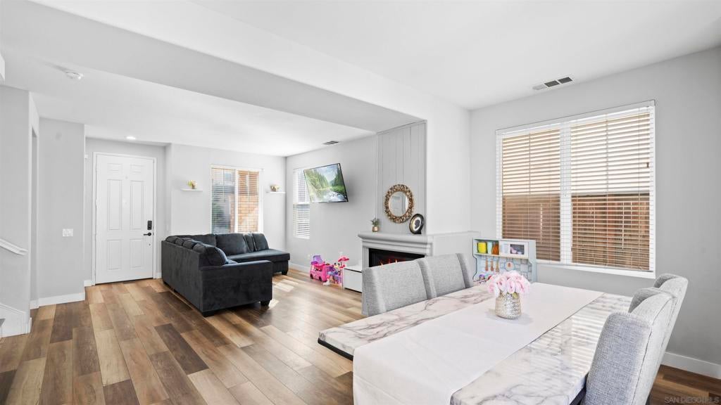 Welcome to this beautifully maintained and thoughtfully updated home located in a desirable family-friendly community in Murrieta. This two-story residence offers 3 bedrooms and 2.5 bathrooms with durable vinyl plank flooring throughout, creating a modern and cohesive living space. The updated kitchen features quartz countertops, painted cabinetry, and a stylish backsplash, opening to a comfortable living area highlighted by a cozy gas fireplace. Additional interior features include a convenient desk nook, indoor laundry room, and a functional floor plan designed for everyday living. Step outside to a spacious patio and low-maintenance backyard featuring recently installed artificial turf, perfect for relaxing, entertaining, or enjoying outdoor time without the upkeep. A detached garage adds additional convenience and storage. Residents enjoy access to community amenities including a pool, kids pool, spa, and playground, all within a short walk. Landscaping maintenance is included with the low HOA. Ideally located near the 215 and 15 freeways with close proximity to Costco, Target, Starbucks, shopping, dining, and future retail developments. This move-in ready home offers comfort, convenience, and modern updates in one of Murrieta’s most accessible locations.