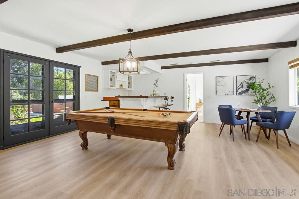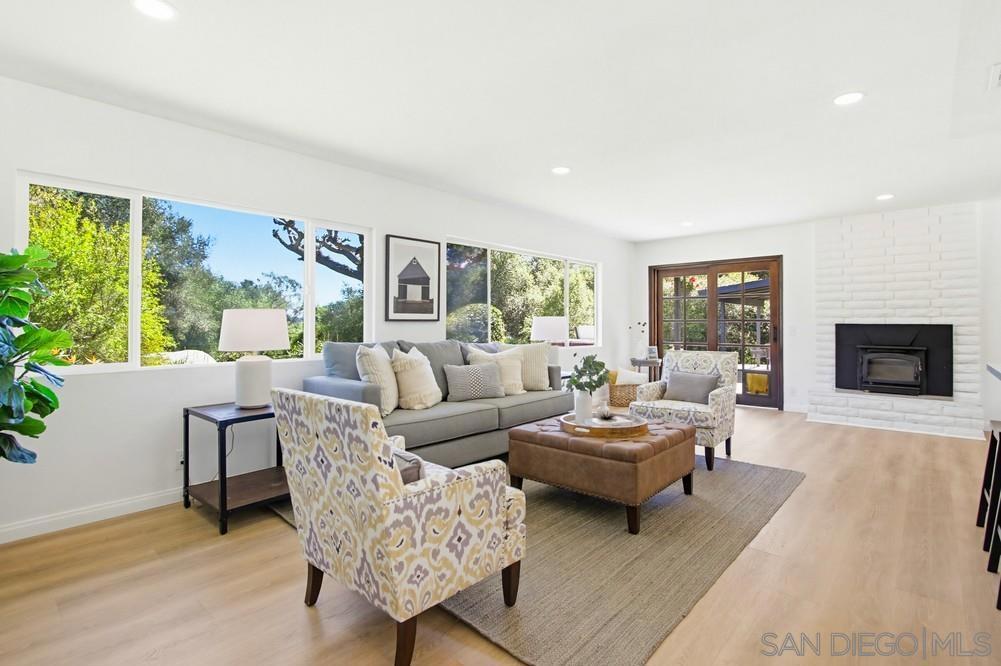 Enjoy peaceful privacy, beautiful natural surroundings, and room to grow in this inviting retreat that sits on nearly 2 acres in beautiful Fallbrook. Set back from the road and surrounded by mature trees, this newly remodeled home offers the perfect blend of privacy, charm, and modern upgrades. This 3 bedroom, 3bath home features a fully remodeled kitchen and new appliances, remodeled bathrooms, new laminate flooring, fresh interior and exterior paint, new light fixtures and a new extra-large water heater, creating a bright and move-in ready space. A spacious bonus room is currently being used as a game room and includes a wet bar and cozy fireplace, making it an ideal gathering space for entertaining family and friends. Spa and pool table are included for added enjoyment. The flexible floor plan includes two bedrooms with their own en-suite bathrooms, offering the option for dual primary suites or a comfortable setup for multigenerational living or a private mother-in-law suite. An oversized garage with a built-in workbench provides excellent space for projects, storage, hobbies or workshop use. The nearly 2-acre property offers usable land and endless possibilities, with fruit trees including tangerines, grapefruit, lime, lemon, and pomegranate. Whether you envision gardens, space for animals, outdoor entertaining areas, or exploring ADU potential (buyer to verify), this property offers the flexibility to create your ideal country lifestyle.
