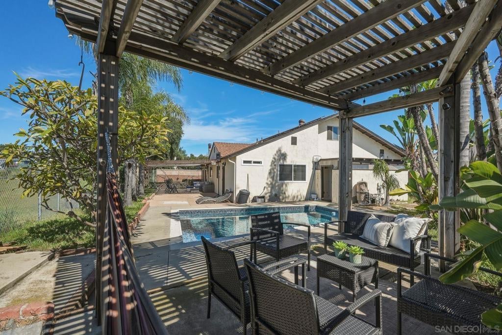 Welcome home to this spacious and cozy Lemon Grove home located on a quiet cul-de-sac. Enjoy beautiful backyard views from the large patio and sparkling pool—perfect for relaxing or entertaining. This wonderful home features a generous living room, a spacious family room, and an extra-large primary suite with a sitting area and direct pool access. Includes a bedroom and bathroom with private exterior entry and a extra added room next to it, offering great flexibility for guests or extended living. This home has it all!! Home has solar at a set price for 20 years! Fiber internet-highest speed and is a smart home!