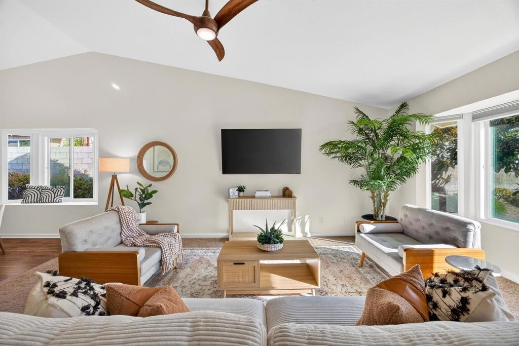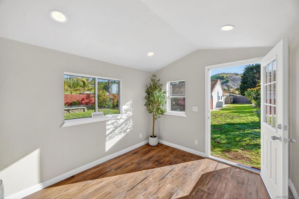 WHAT'S NEW?? Well - a ton of things in this home! NEW roof, PAID solar, NEW gutters, NEW HVAC, NEW furnace, NEW lighting, NEW outside drainage, and even more new stuff! This single-story, single family home is on a set-back lot on a HALF ACRE and HOA gives permission for ADUs. The driveway alone can pack in nearly 6 cars - lots of privacy with this layout. The 4 bedrooms are perfect for parents and kids while the single-story makes it ideal for extended family, as well. Vaulted ceilings in the main living space create a wide open and bright vibe. There is even a 2-way fireplace so you can have a cozy dinner and bop over to the family room for some cozy tv time. A small casita in the backyard has electricity and would be ideal for working out, an office or a fun playroom for the kids! And yep - you ARE allowed to park your RV there! Only 15 minutes from the Oceanside Pier - you gotta come see this house!