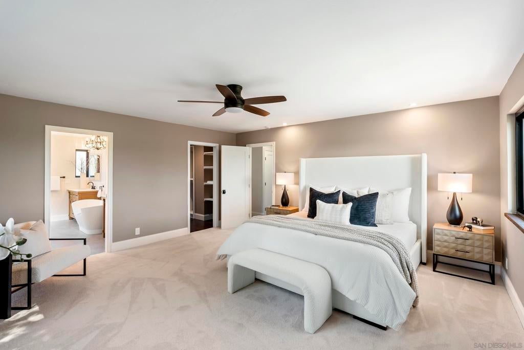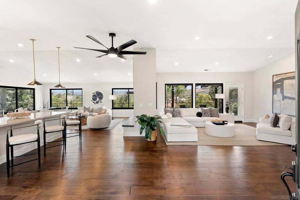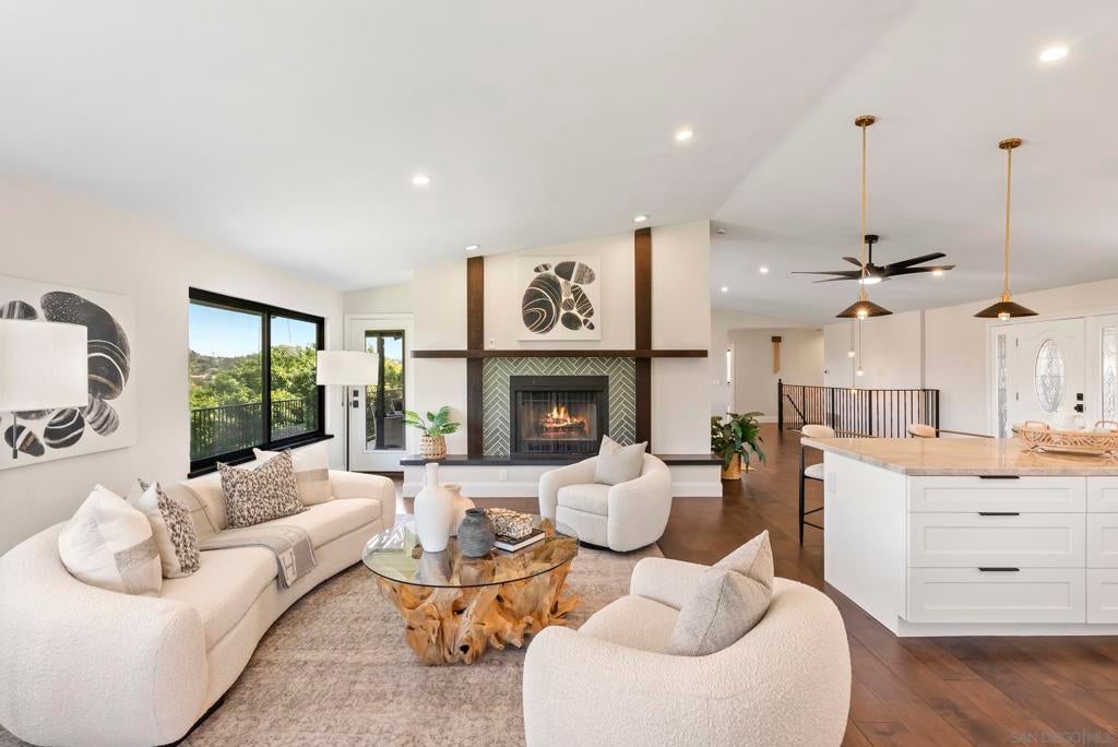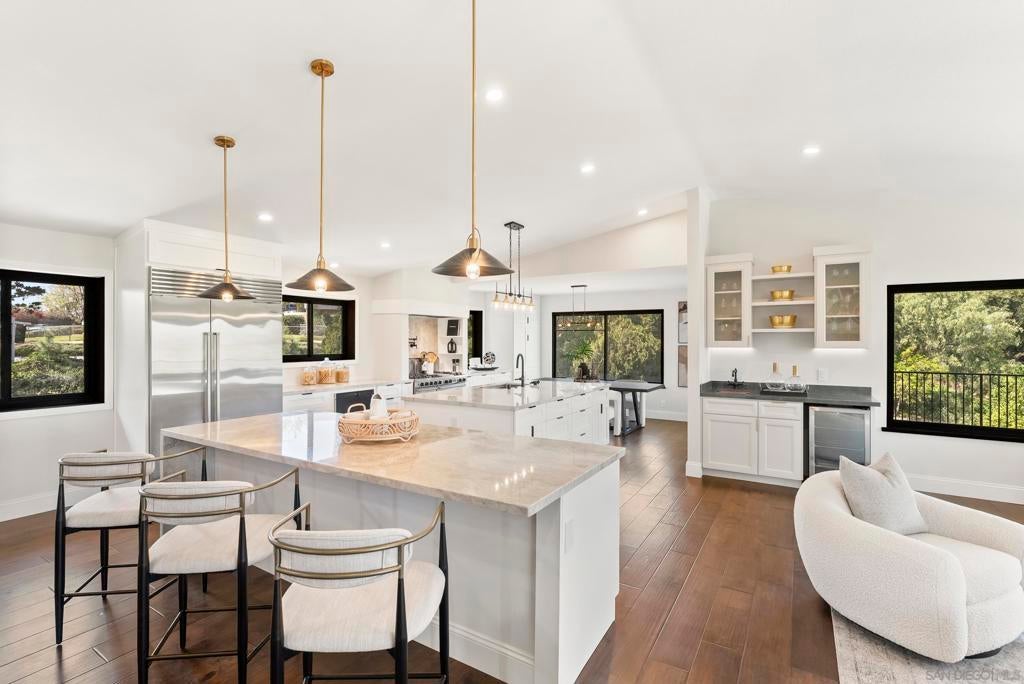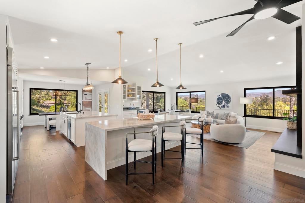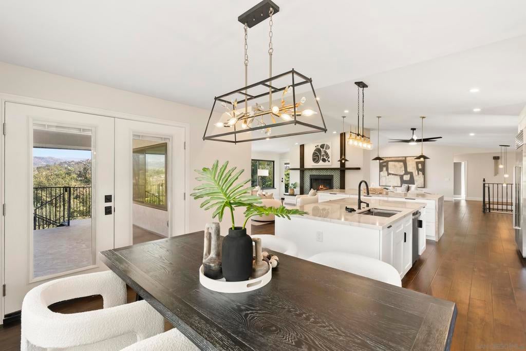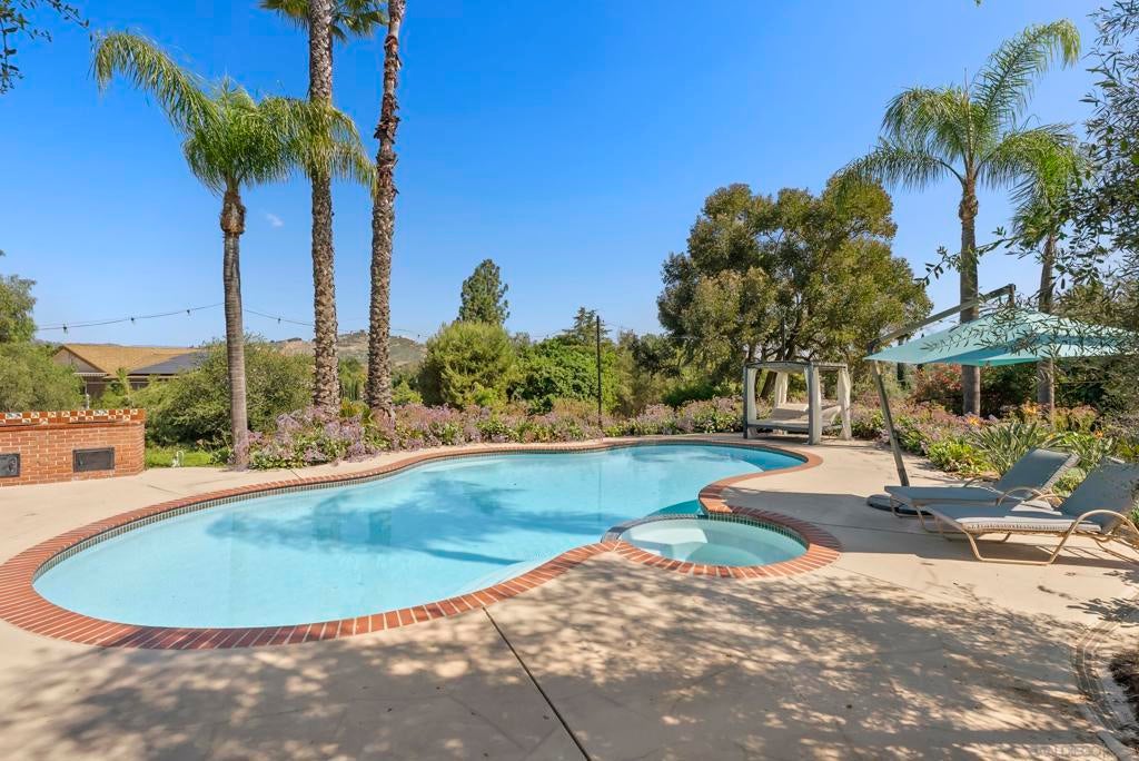 Rare remodeled hillside estate set on over an acre in the scenic hills of Escondido, offering a unique blend of privacy, luxury, and flexibility. With more than $450,000 in upgrades, this beautifully updated 3,823-square-foot home features 4 bedrooms, 3.5 bathrooms, and two fully equipped kitchens, making it ideal for multigenerational living, extended guests, or future possibilities. The main chef’s kitchen showcases dual islands, custom cabinetry, and commercial-grade appliances, while the secondary kitchen and living area create a private space perfect for family or visitors. The primary suite offers a spa-inspired retreat with a steam shower, soaking tub, and peaceful hillside views. Outside, enjoy a resort-style pool, expanded deck, and sweeping sunset views, all set on a private acre with room for gardens, outdoor entertaining, recreation, or a future ADU with separate driveway access. The property’s acreage also allows for a variety of farm animals and larger livestock, including chickens, ducks, miniature goats, and other small-scale backyard livestock, creating the perfect setting for a hobby farm or animal enthusiast. Tucked away in a peaceful setting yet minutes from shopping, dining, and local wineries, the home also offers convenient access to Interstate 15 and California State Route 78, with the beaches of Encinitas and Carlsbad just a short drive away. A rare opportunity to own a private North County estate with acreage, views, and exceptional flexibility for both luxury living and rural pursuits.