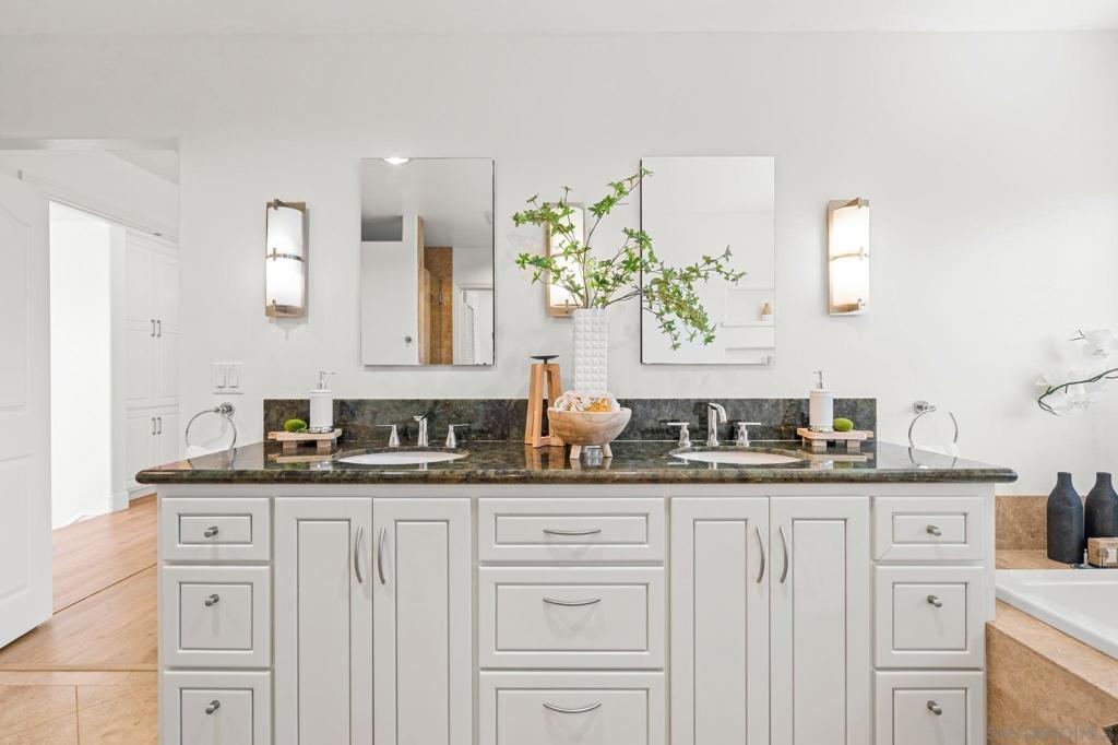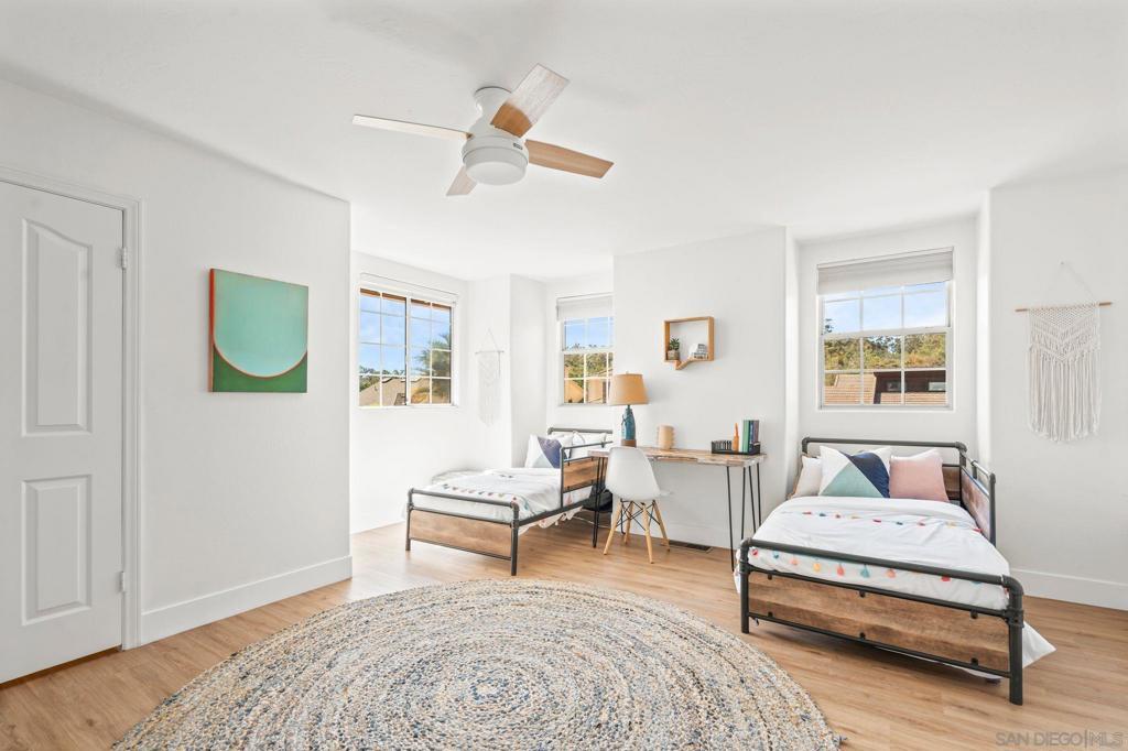 Beautiful contemporary home in Rancho Santa Fe featuring a grand entrance with soaring high ceilings and abundant natural light. As you enter, you are welcomed by charming courtyards where you can plant and enjoy your own private garden. The living room showcases large bay windows that fill the space with sunlight, creating a warm and inviting atmosphere. A contemporary dining room on both sides of the entry is highlighted by elegant designer lighting, perfect for entertaining. The modern family room features expansive sliding glass doors that open to the backyard, blending indoor and outdoor living. The kitchen is well-equipped with plenty of cabinetry, a cozy breakfast area, and premium stainless steel appliances including a Jenn-Air six-burner stove, Sub-Zero refrigerator, wine cooler, dishwasher, and a new Bosch stainless steel microwave. The lower level offers two bedrooms and one bathroom, ideal for guests or multi-generational living. The property also features mature fruit trees including fig, lemon, and loquat. Upstairs, the spacious primary suite includes a beautifully finished $13,000 custom closet designed by California Closets with dedicated shelving for purses, shoe racks, boot storage, jewelry organizers, and hanging space. The primary bathroom features dual shower heads and body jets for a spa-like experience. Additional bedrooms are generously sized with large closets and abundant storage throughout the hallway and primary suite. Upstairs flooring and the shower were updated in 2021. The home features contemporary finishes and recessed lighting throughout. Beautiful contemporary home in Rancho Santa Fe featuring a grand entrance with soaring high ceilings and abundant natural light. As you enter, you are welcomed by charming courtyards where you can plant and enjoy your own private garden. The living room showcases large bay windows that fill the space with sunlight, creating a warm and inviting atmosphere. A contemporary dining room on both sides of the entry is highlighted by elegant designer lighting, perfect for entertaining. The modern family room features expansive sliding glass doors that open to the backyard, blending indoor and outdoor living. The kitchen is well-equipped with plenty of cabinetry, a cozy breakfast area, and premium stainless steel appliances including a Jenn-Air six-burner stove, Sub-Zero refrigerator, wine cooler, dishwasher, and a new Bosch stainless steel microwave. The lower level offers two bedrooms and one bathroom, ideal for guests or multi-generational living. The property also features mature fruit trees including fig, lemon, and loquat. Upstairs, the spacious primary suite includes a beautifully finished $13,000 custom closet designed by California Closets with dedicated shelving for purses, shoe racks, boot storage, jewelry organizers, and hanging space. The primary bathroom features dual shower heads and body jets for a spa-like experience. Additional bedrooms are generously sized with large closets and abundant storage throughout the hallway and primary suite. Upstairs flooring and the shower were updated in 2021. The home features contemporary finishes and recessed lighting throughout. The backyard enjoys natural sunlight and offers a relaxing outdoor setting with a gazebo and BBQ area—perfect for entertaining and enjoying Southern California living.