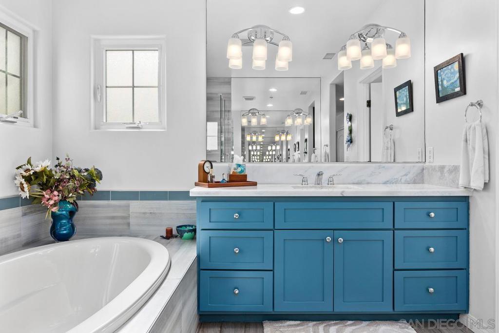 Tucked away West of the 5, this beautiful Spanish-style residence captures the essence of coastal living with timeless charm. High ceilings and 3 inviting fireplaces create warmth and character, while multiple French doors open to the outside for indoor/outdoor entertaining, including a built-in BBQ. The beautifully equipped, large open kitchen works well for gatherings. Located within the sought-after Encinitas Union School District, walking distance to eateries and fun. There is solar, AC, EV charging, large bedrooms & closets. Priced to sell! WELCOME HOME.