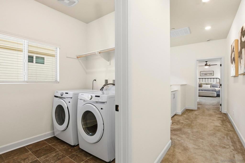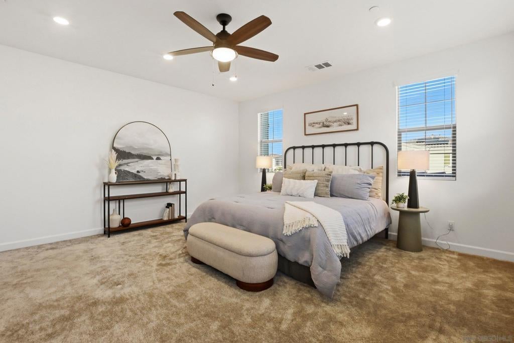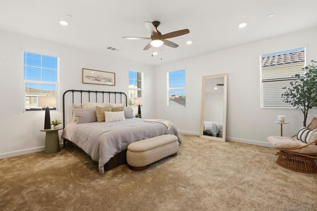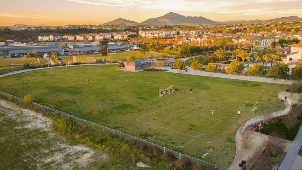 Welcome to this beautifully maintained home in the highly sought-after Village of Montecito in Otay Ranch. Built in 2024 and better than brand-new, this move-in-ready residence offers the perfect blend of modern comfort, thoughtful upgrades, and a true sense of community. The bright, open-concept main level is designed for both everyday living and family gatherings, with the kitchen, dining area, and great room flowing seamlessly together and opening to a spacious outdoor area. A full bedroom and full bathroom on the first floor add flexibility for guests, extended family, or a home office. Upstairs, you’ll find two additional bedrooms along with a spacious owner’s suite featuring an en-suite bath and walk-in closet. This home is packed with valuable upgrades, including owned solar with a battery, a whole-house water filtration system, upgraded flooring downstairs, window blinds throughout, and a beautifully finished backyard with pavers and turf—ideal for kids to play, pets to roam, and easy outdoor entertaining. This home is steps away from Jacaranda Park, and a short walk to Otay Ranch Grove Park, a 7.1-acre green space featuring lit tennis courts, basketball courts, a soccer field, playgrounds, and scenic pathways. Also within walking distance are Summerland Park—offering a wading pool for kids and an adult pool with lap lanes, a 6,000-square-foot deck, and grassy areas—and Meadows Park, featuring a dog park, amphitheater, picnic spots, and fitness stations. With top-rated schools, nearby shopping and dining, and easy freeway access, this home offers an exceptional opportunity to enjoy a vibrant, family-friendly lifestyle in one of Otay Ranch’s most desirable neighborhoods.